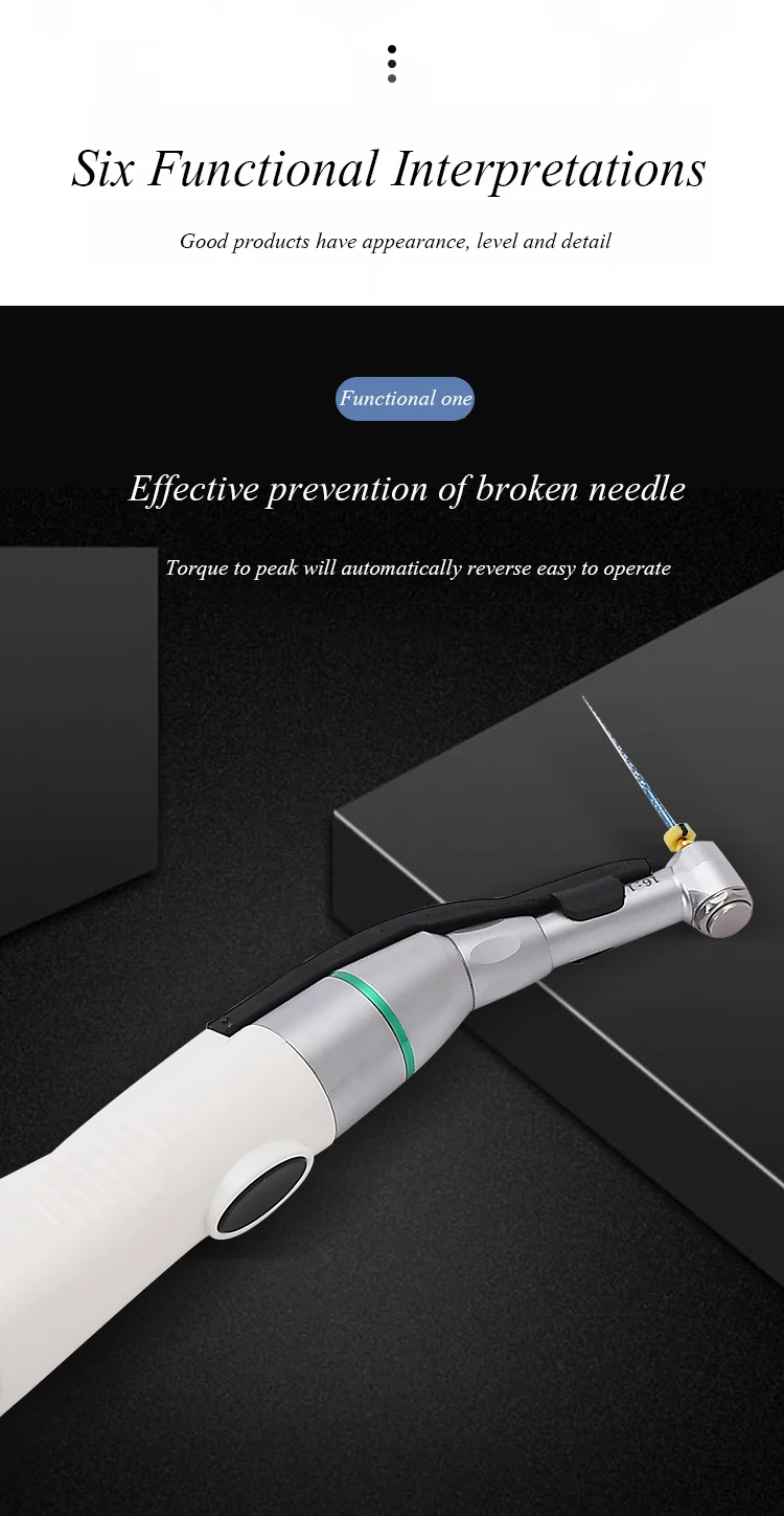 Soft start and soft stop can be achieved and the operation is more comfortable. Simultaneously, it will not break the needle when root canal files encounter instantaneous shock.