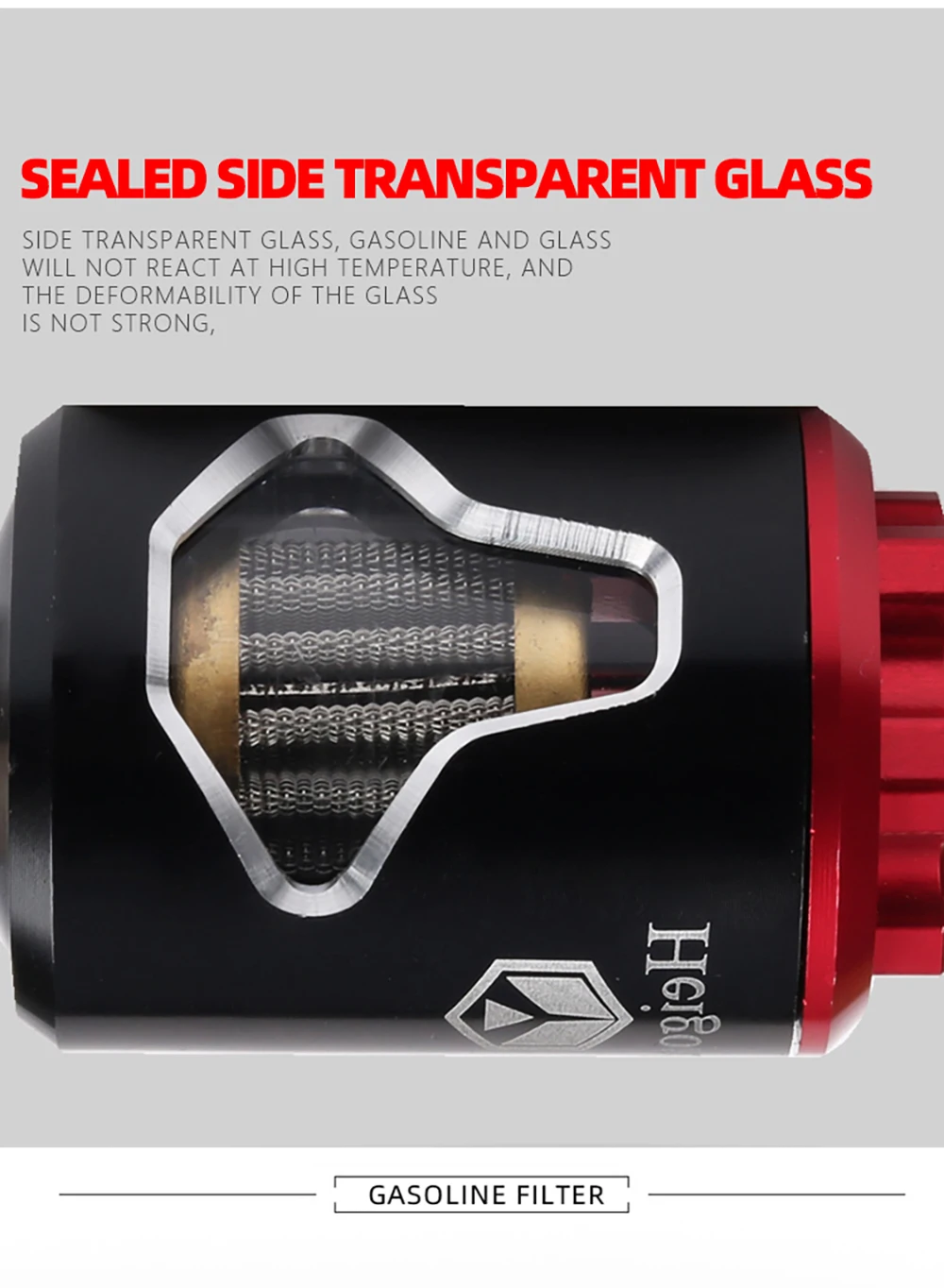 1.Stainless steel interface,cnc aluminum case,anodized color,high-strength glass,stainless steel and copper filter element.