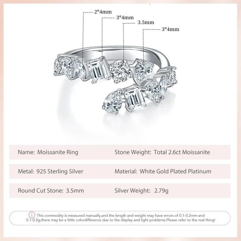 Moissanite Size: total 2.6ct