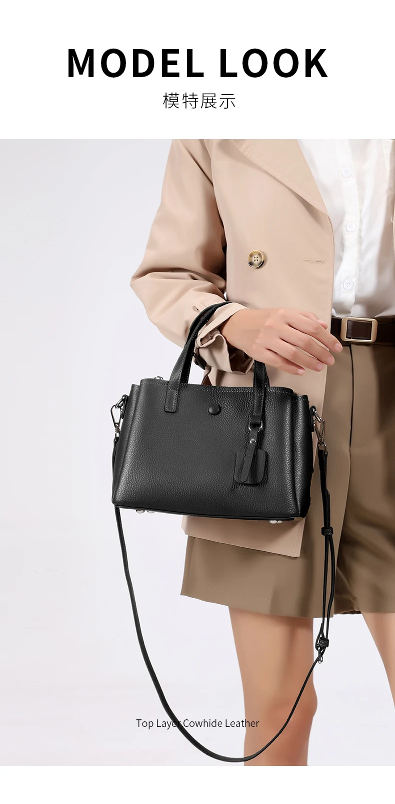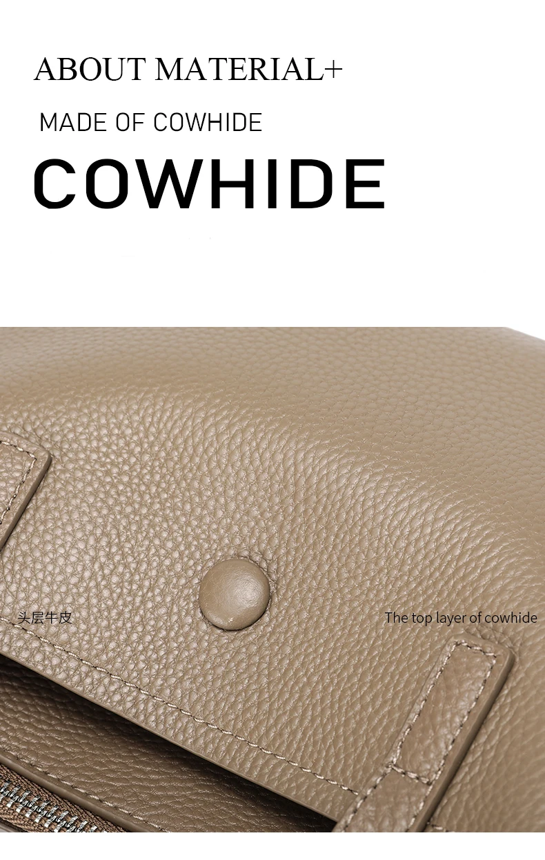 1.Cowhide Genuine Leather Material,Crafted from premium cowhide, this shoulder bag offers durability and a luxurious feel.