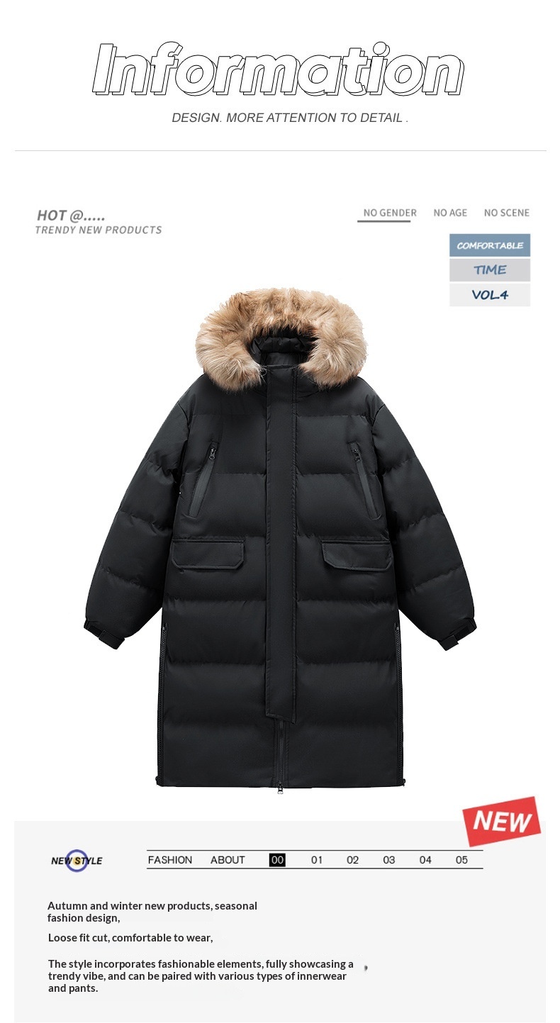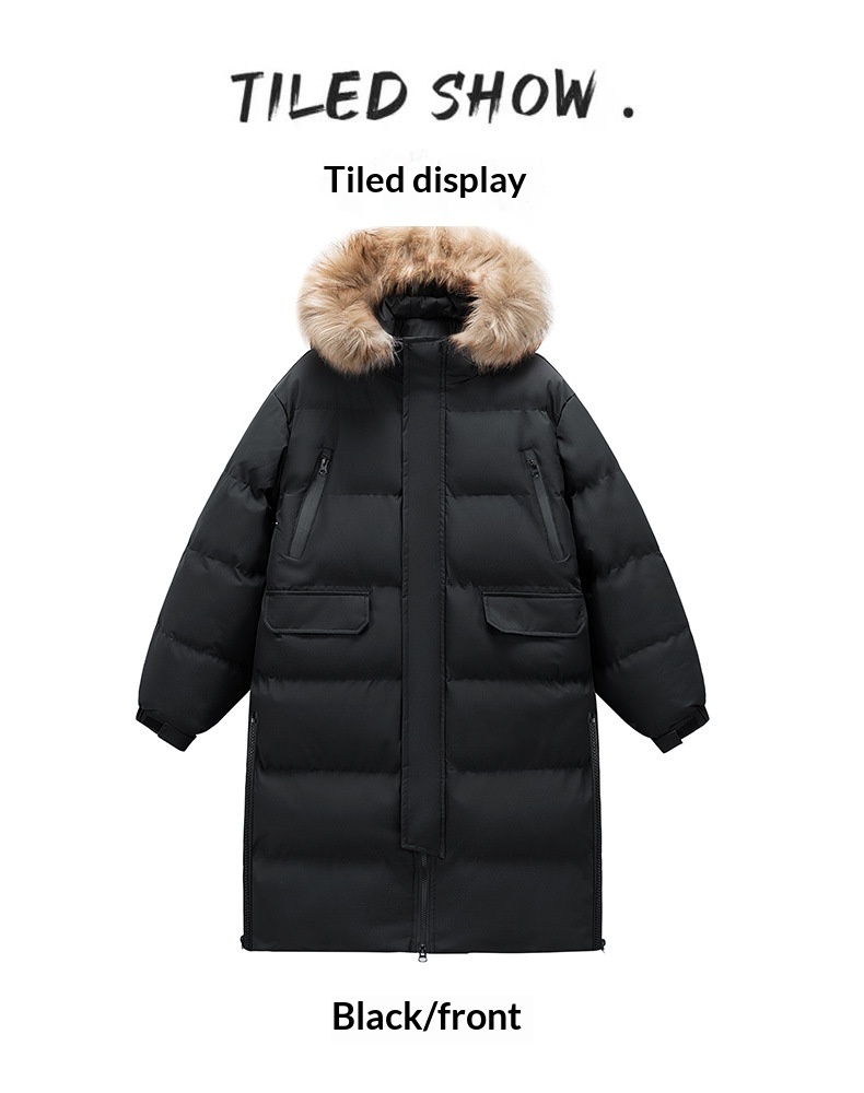 Color: Black D016, Size: XL - Women's Mid-length And Long Winter Coat With A Thickened Fur Collar Q119-CJPK263634716PK