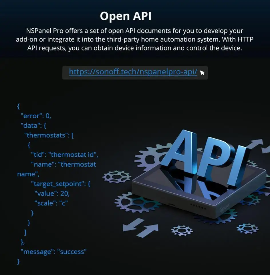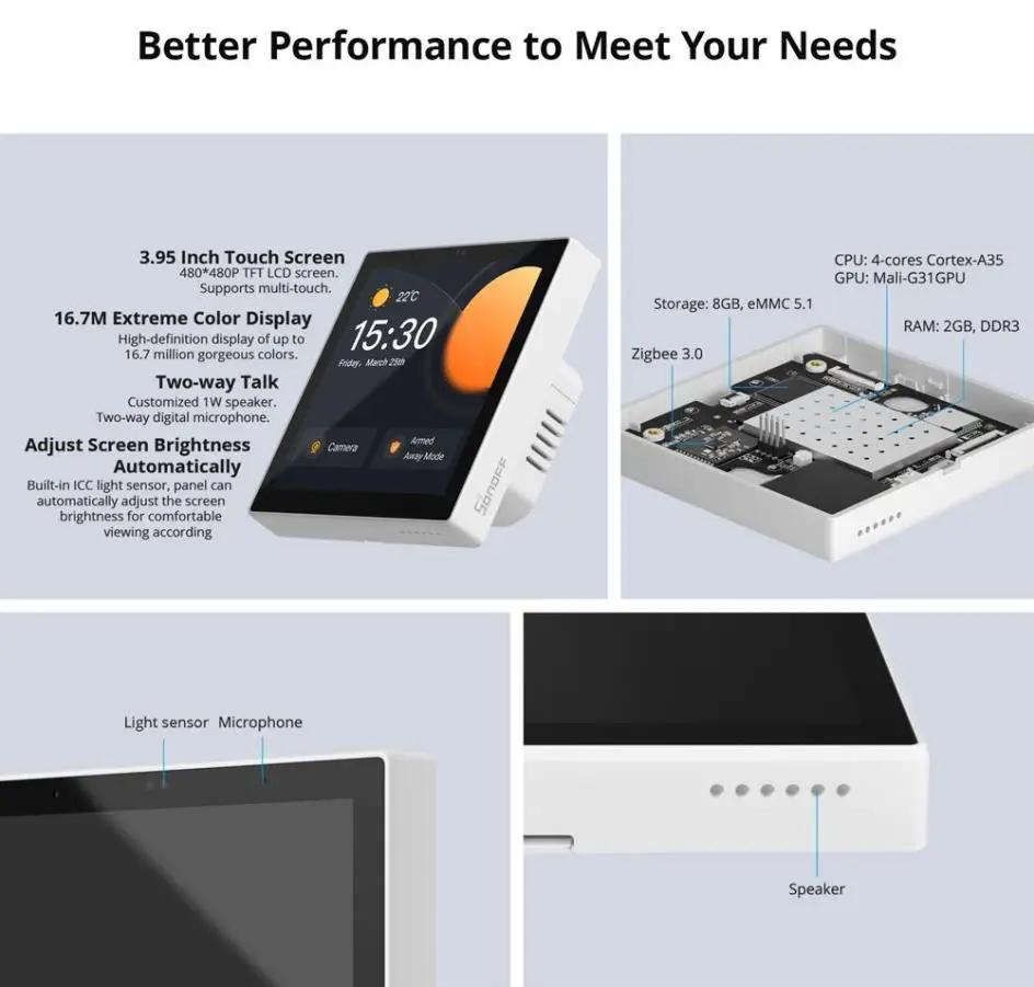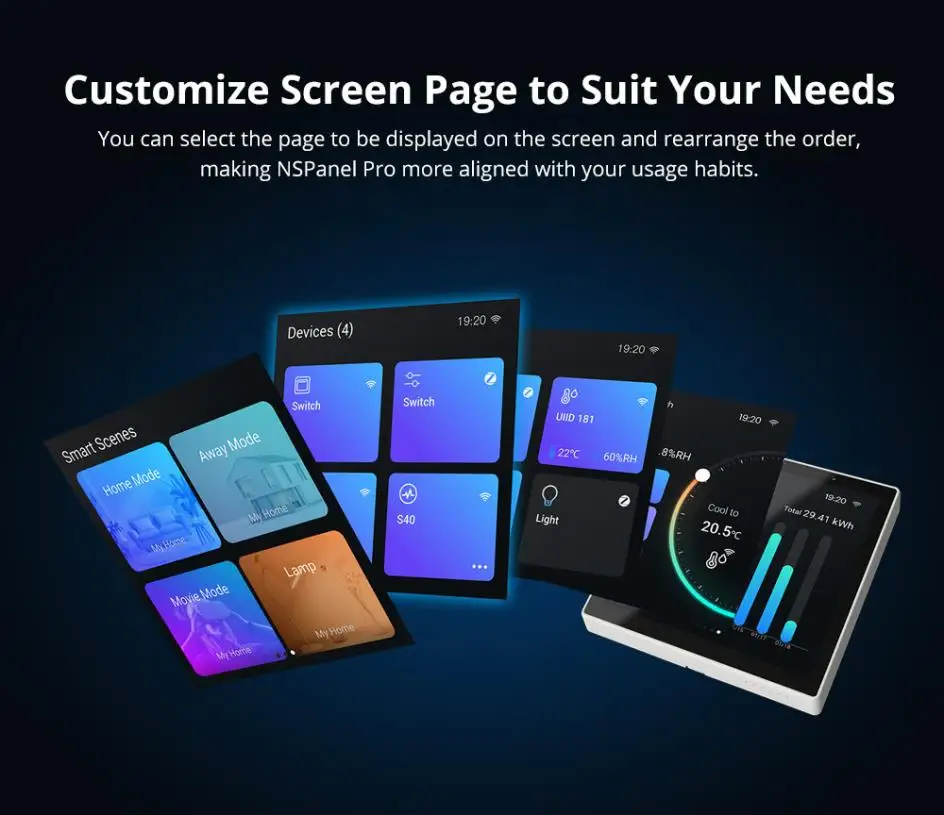 SONOFF NSPanel Pro is a smart home control panel. Your smart lights, switches, heaters, coollers, curtains, and all your smart devices can be controlled. An unlimited number of control devices, all in one panel.