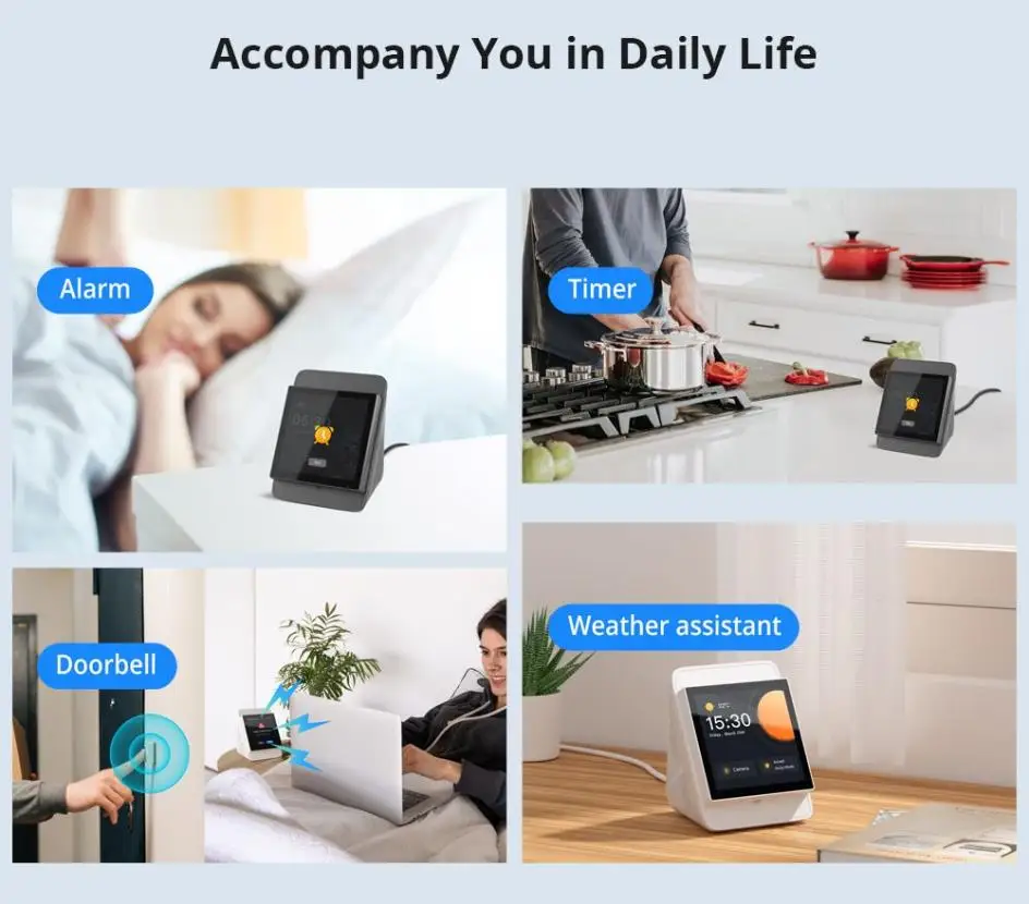 NSPanel Pro can be used as a display, supports adding the following four types of cameras for live monitoring. Viewing the real-time monitoring of living room, garage, bedroom, etc on the panel at any time.