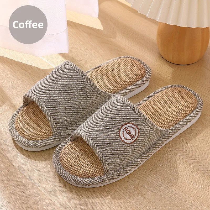 Color: Bronze, Shoe Size: 14.5 - Linen Slippers Indoor Home Breathable Women Men Slides Linen Coupl F640-12000033430213178