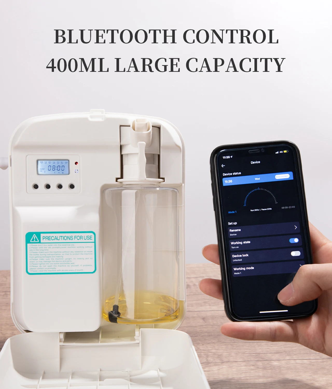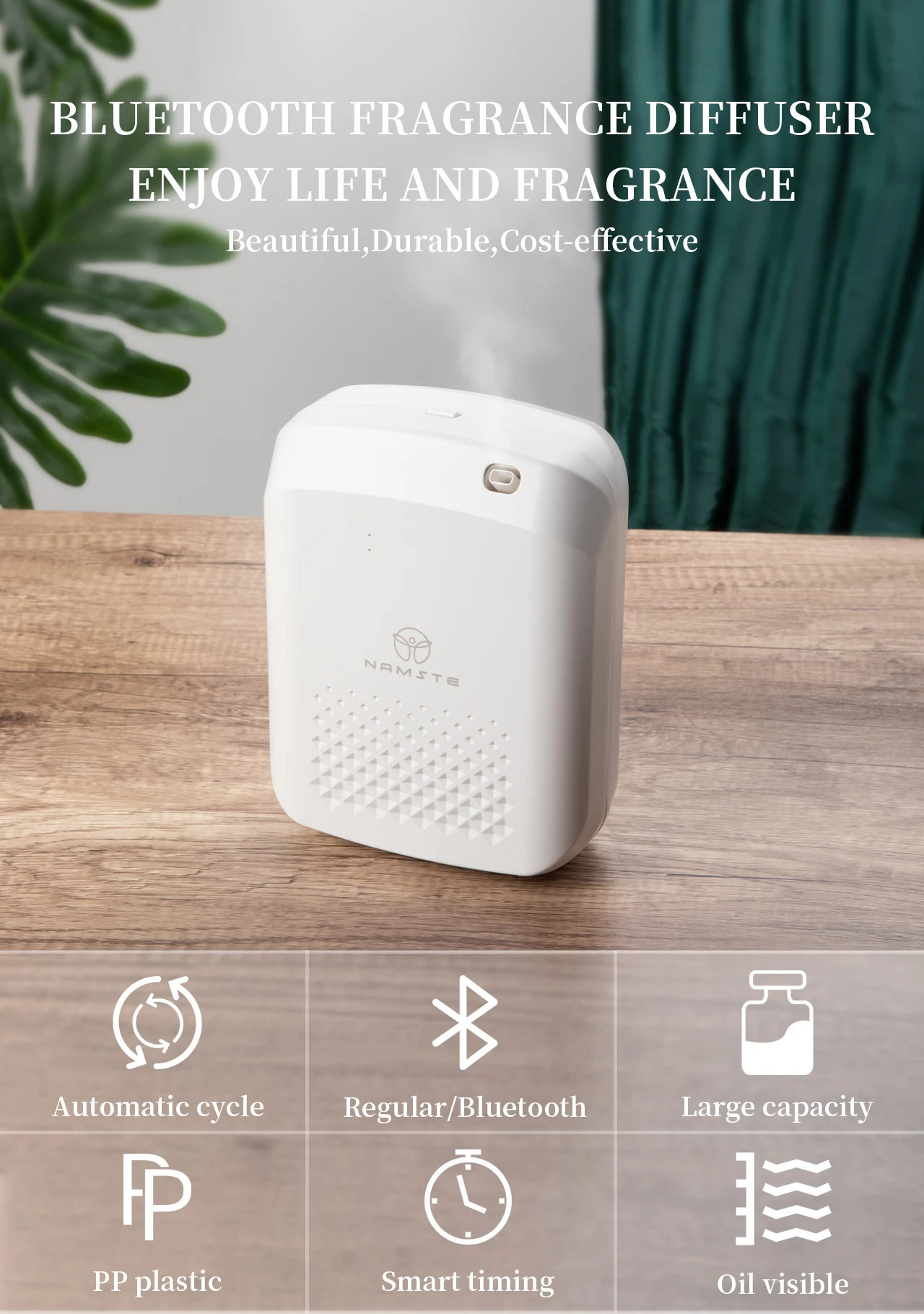 The Namste Aroma Diffuser boasts a substantial 400ML essential oil capacity, providing long-lasting aromatic therapy for your home.