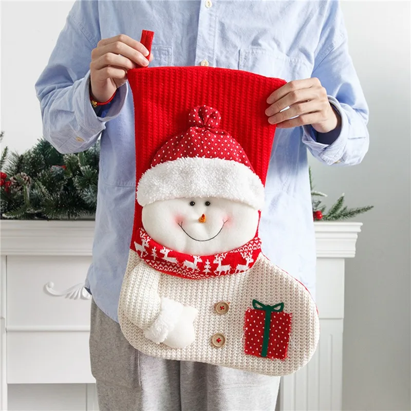 Large Red White Knitted Christmas Stocking Santa Claus Fireplace Decor Socks Xmas Gift Bags Candy Holder Decor for Home