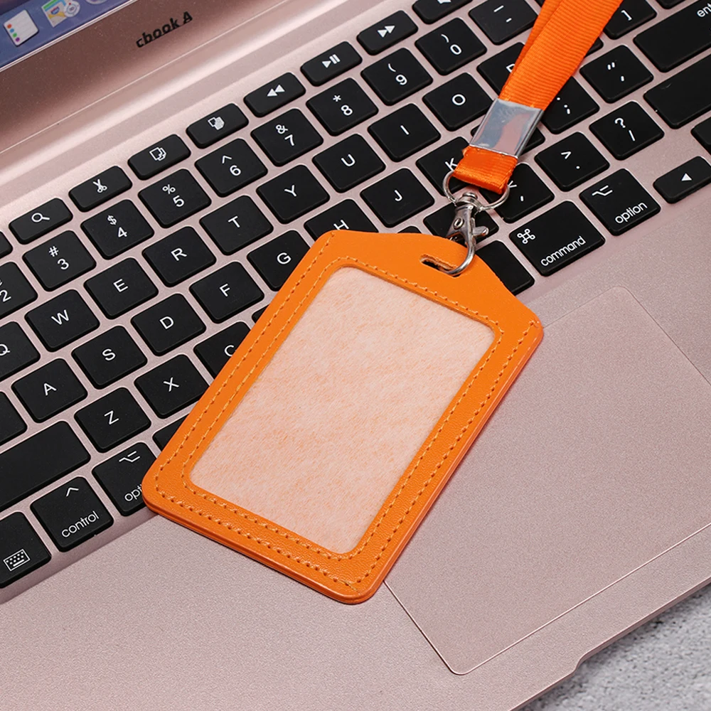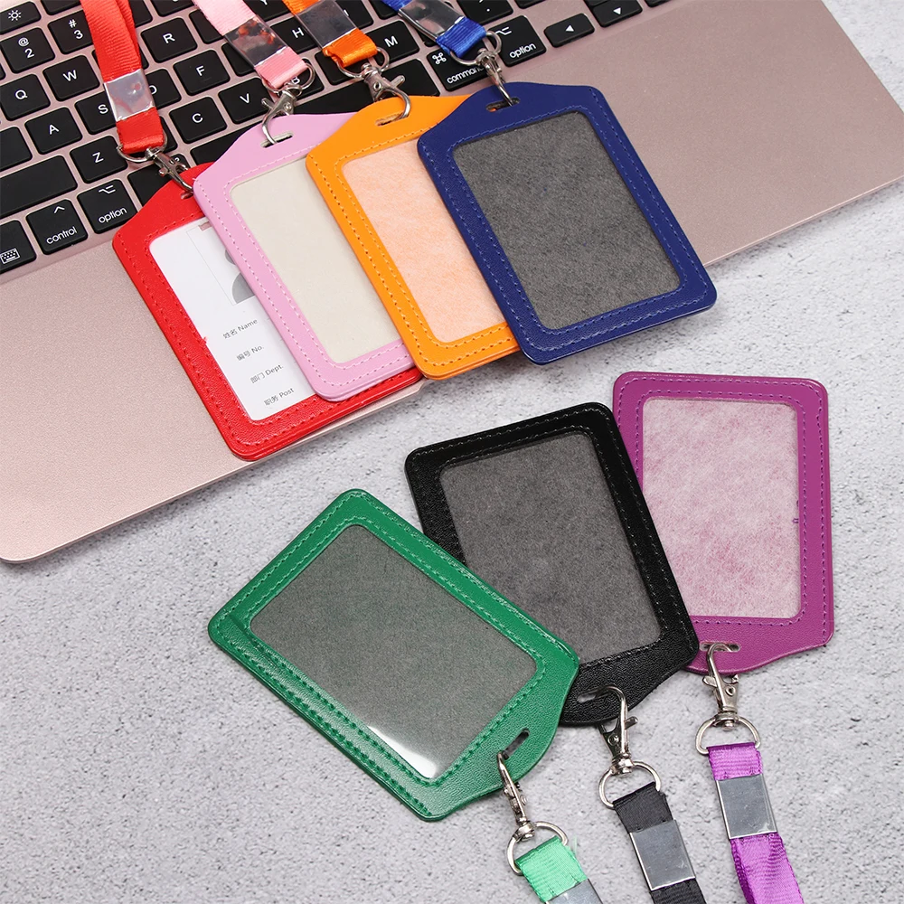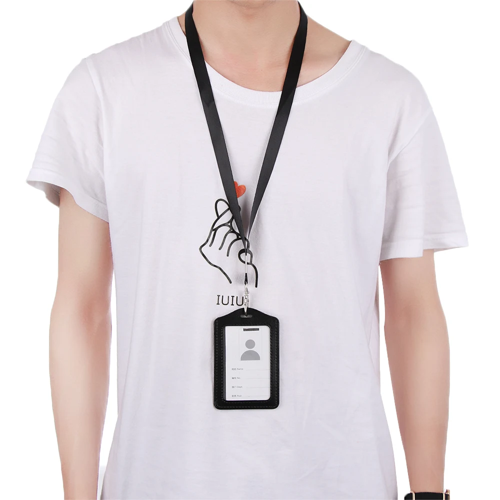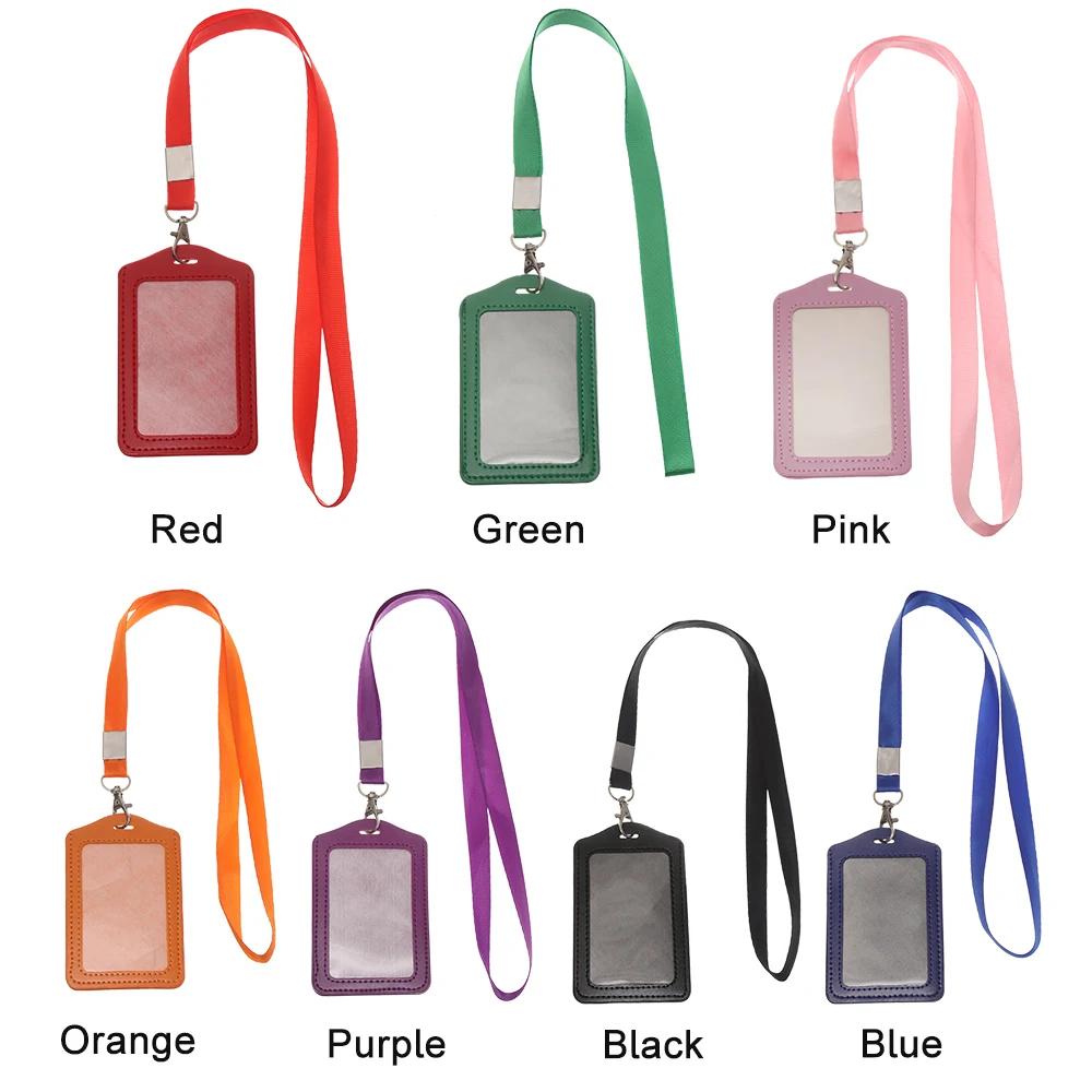 Portatarjetas de trabajo Unisex con cordón PU Tarjeta bancaria Nombre Titulares de tarjetas de crédito Portatarjetas de identificación de autobús Insignia de identidad con correa para el cuello