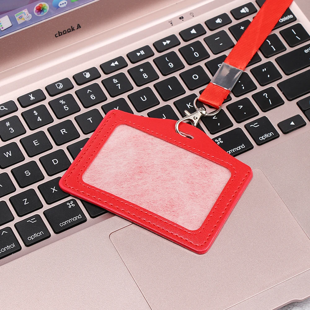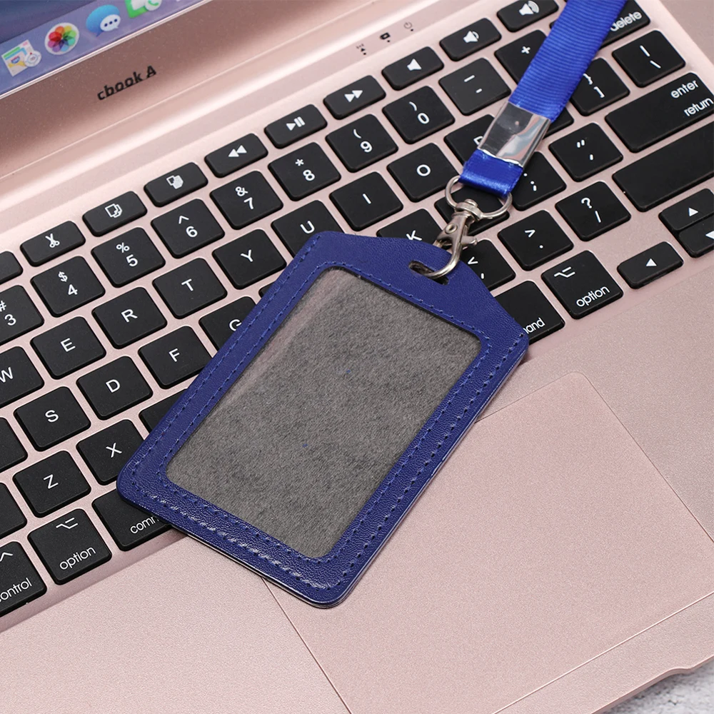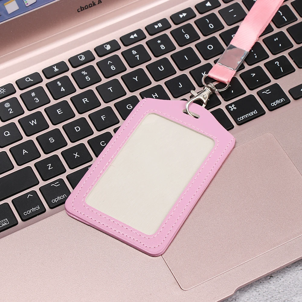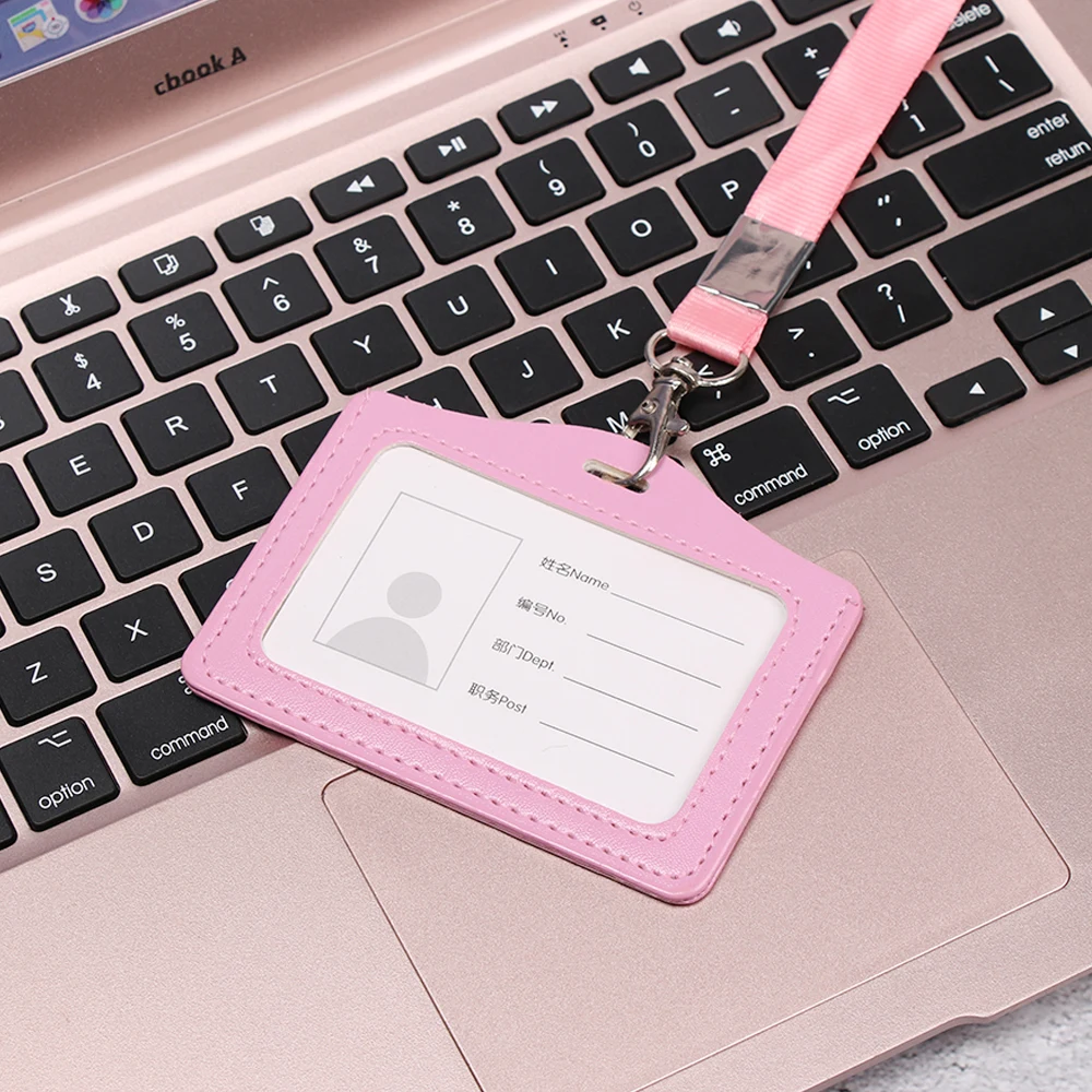 Portatarjetas de trabajo Unisex con cordón PU Tarjeta bancaria Nombre Titulares de tarjetas de crédito Portatarjetas de identificación de autobús Insignia de identidad con correa para el cuello