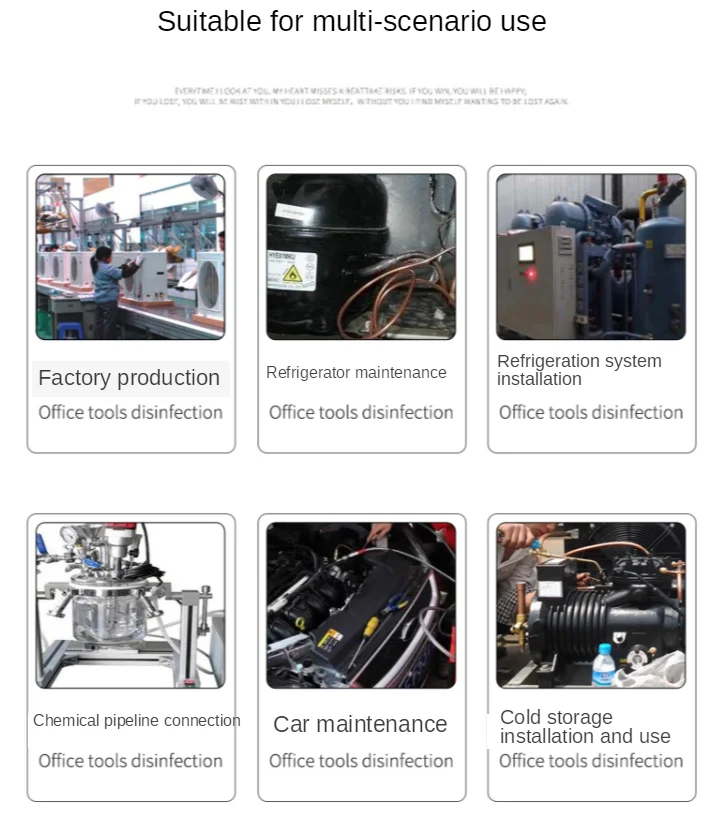 Scope of application: factory production, refrigerator maintenance and use, refrigeration system installation, chemical pipeline connection, automobile maintenance and use, cold storage installation and use, household refrigeration pipeline use