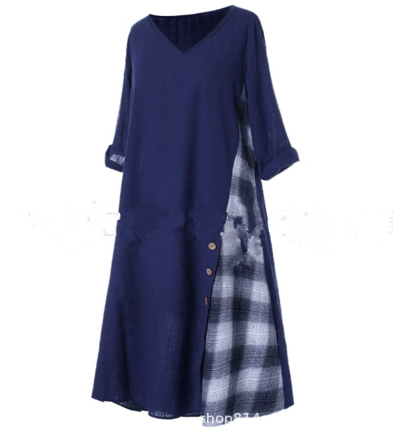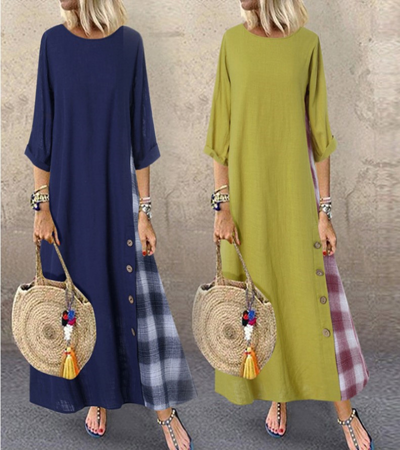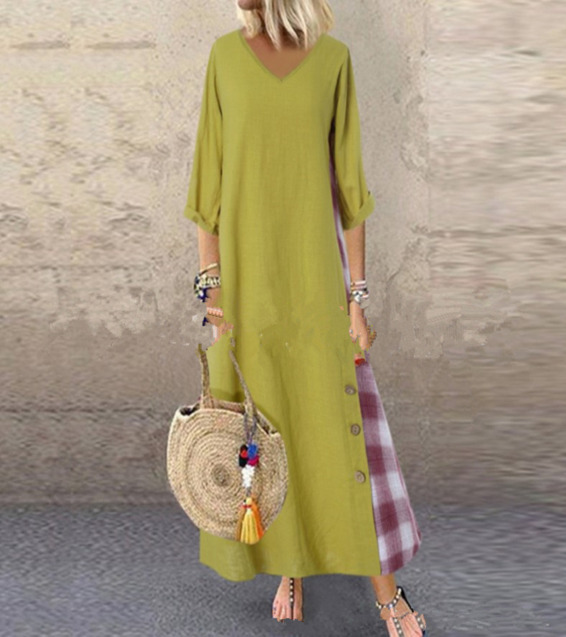 Color: green, Size: XL - Plaid short-sleeved dress Q119-CJNSSYLY02266-green-XL