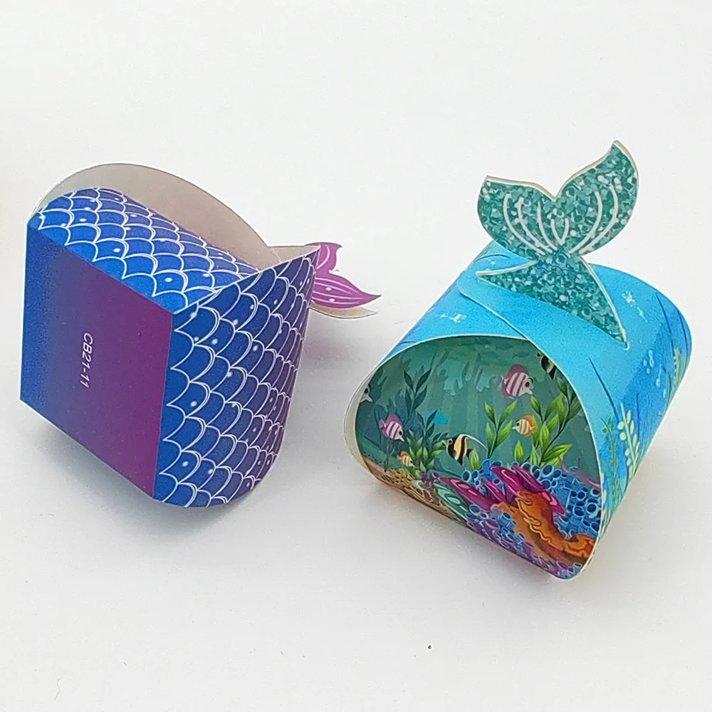 1pc Mermaid Tail Treat Bag Under the Sea Themed Goodies Bags Little Mermaid Birthday Party Candy Boxes Small Gifts for Guests