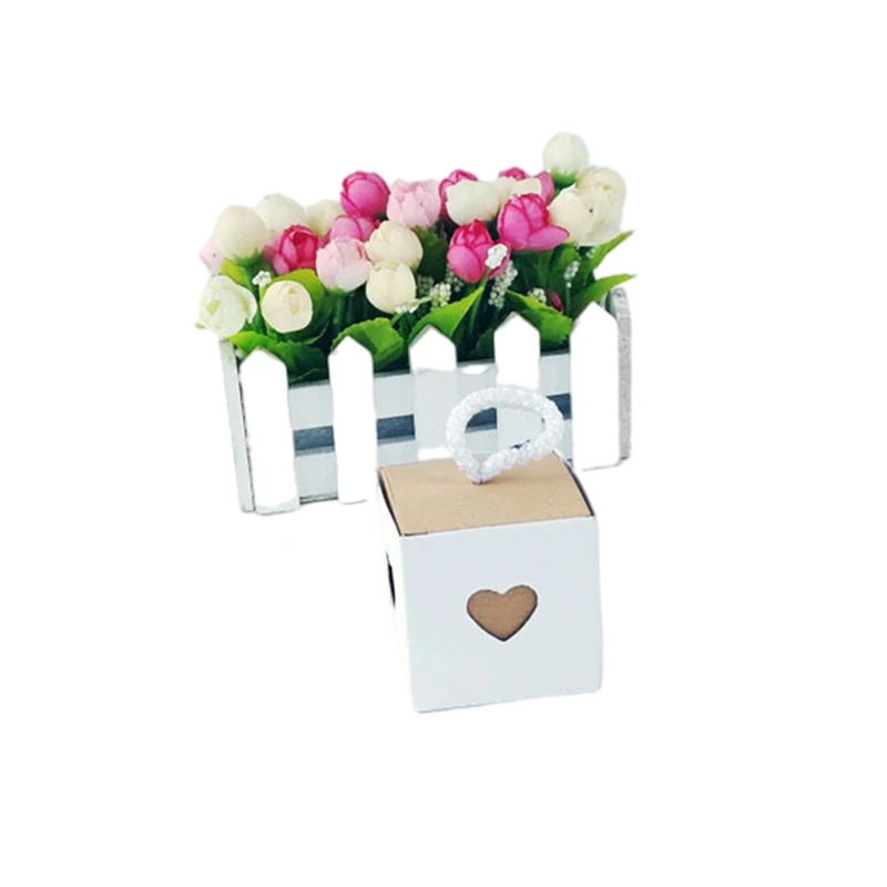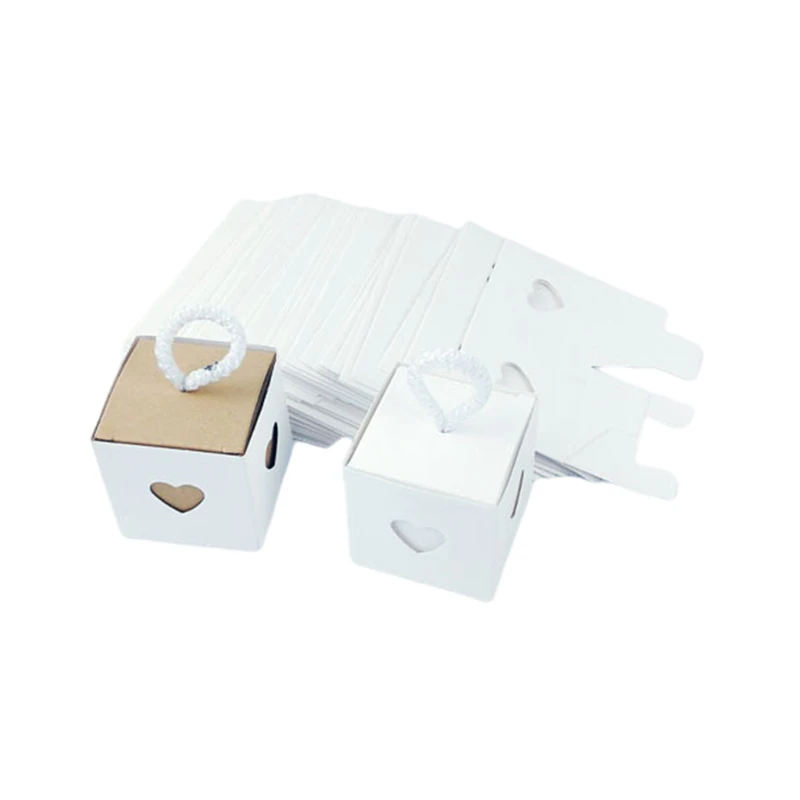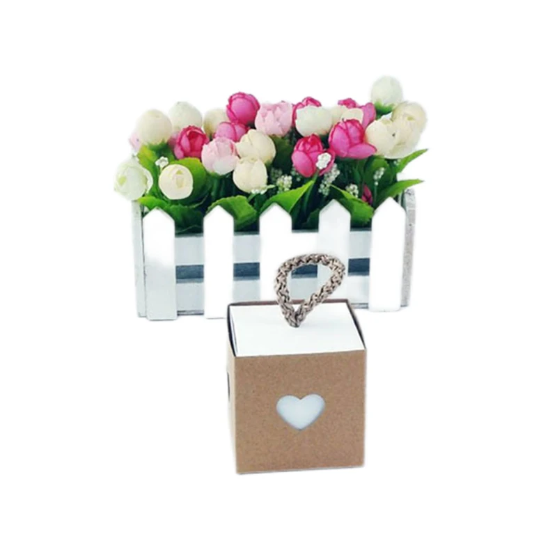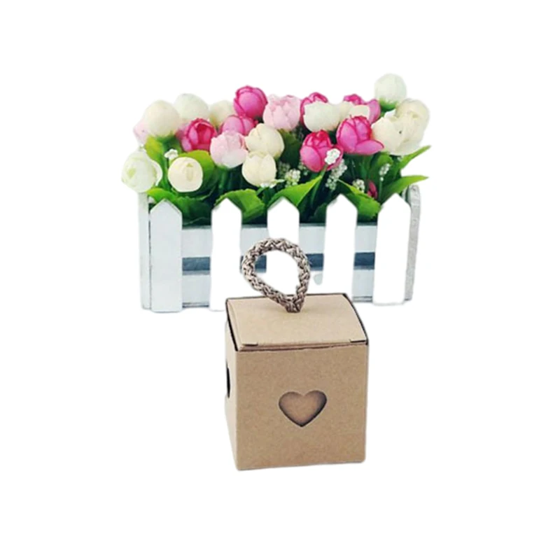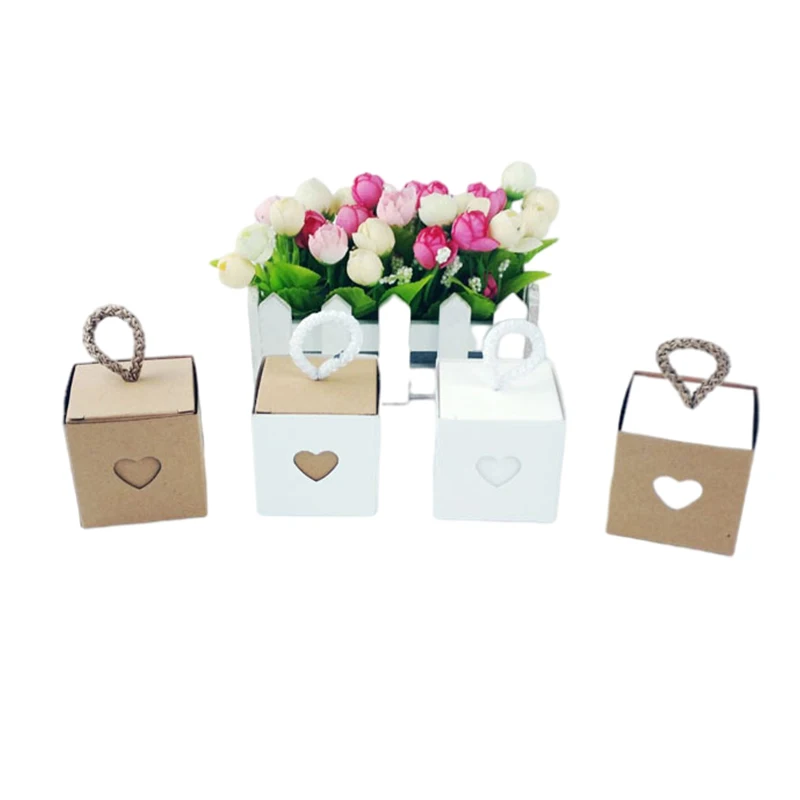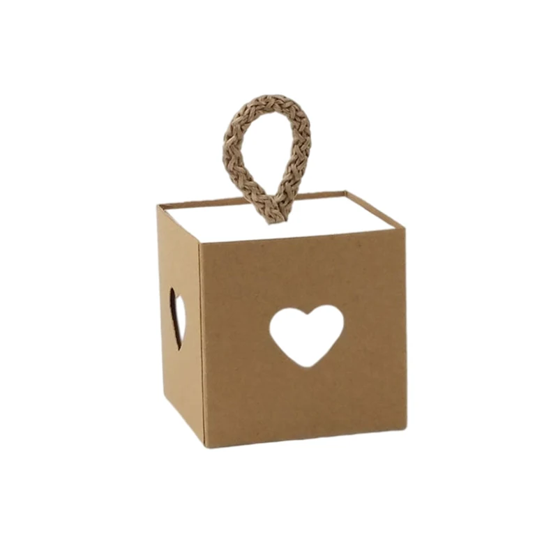 25/50Pcs Kraft Paper Gift Box Square Heart Wedding Favor Candy Box With Rope Hand Packaging Bags Wedding Birthday Party Supplies