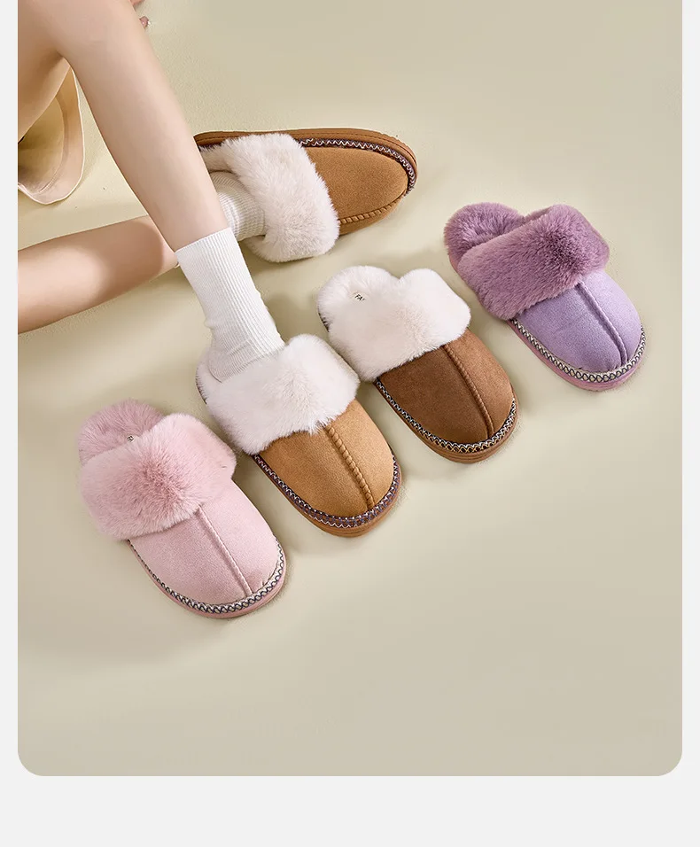 Shevalues Women Plush House Slippers Fashion Fur Outdoor Fuzzy Slides Winter Indoor Fuzzy Slides Warm Women Fluffy Cotton Shoes