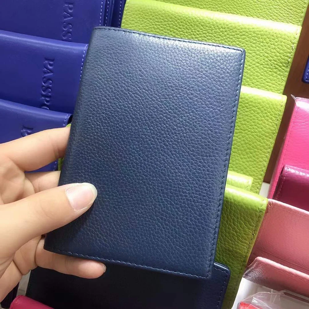 100% Cowhide Passport Holder Factory Genuine Leather Engrave Letters Men Women Passport Cover Customized Name Travel Card Wallet