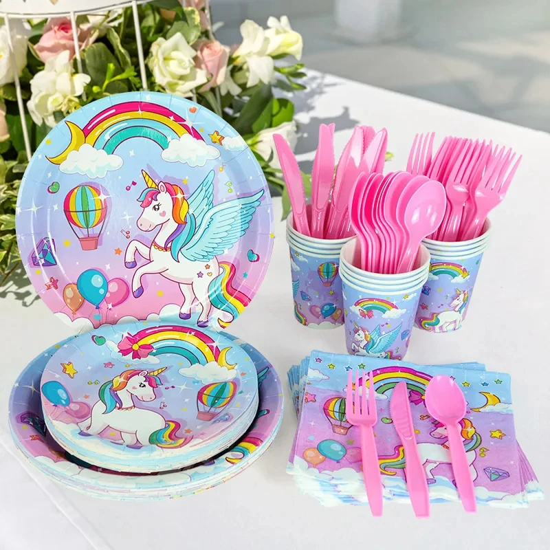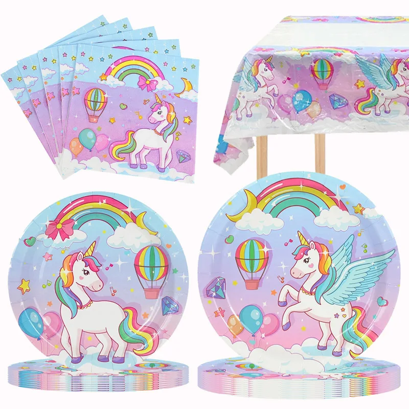 Unicorn Party Disposable Tableware Plates Cups Napkins Tablecloth Girl Birthday Unicorn Party Decoration Baby Shower Supplies