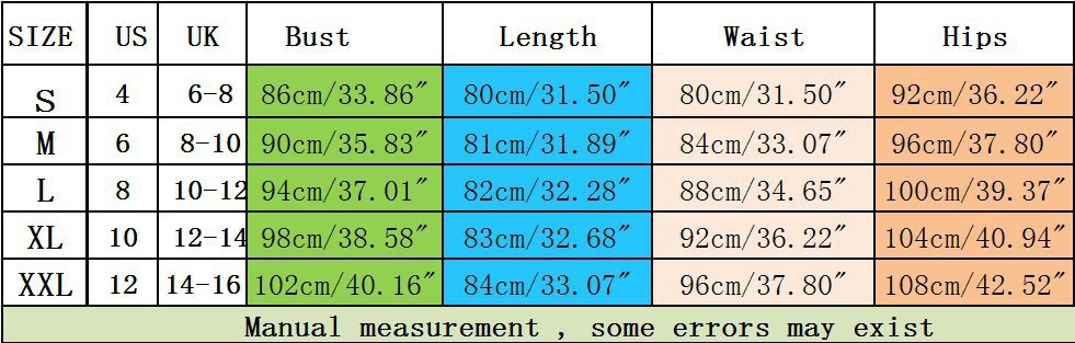 Note: do not select the same size as the usual clothes; 1 - 2 cm error is acceptable; item colors displayed on the pictures can be displayed on the computer screen is slightly different with the monitors are not calibrated