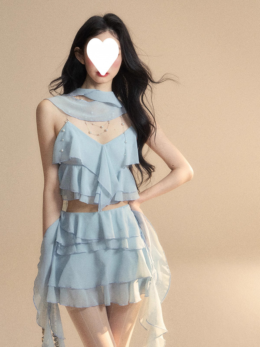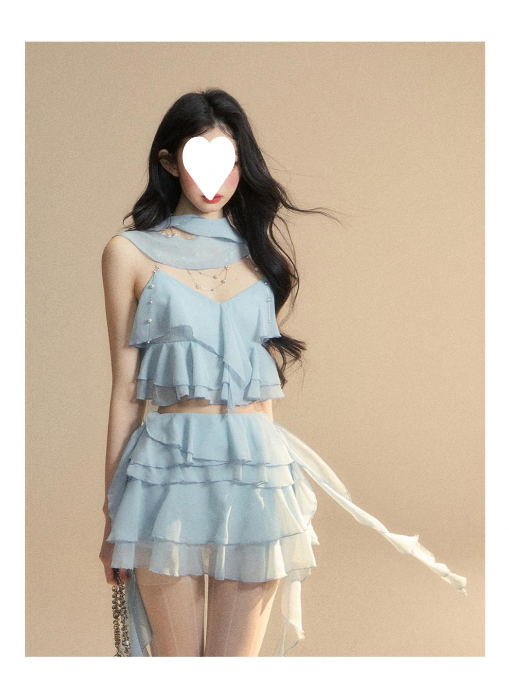 Color: cream blue vest, white red vest, cream blue skirt, white red skirt, cream blue vest skirt two-piece set, white red vest skirt two-piece set