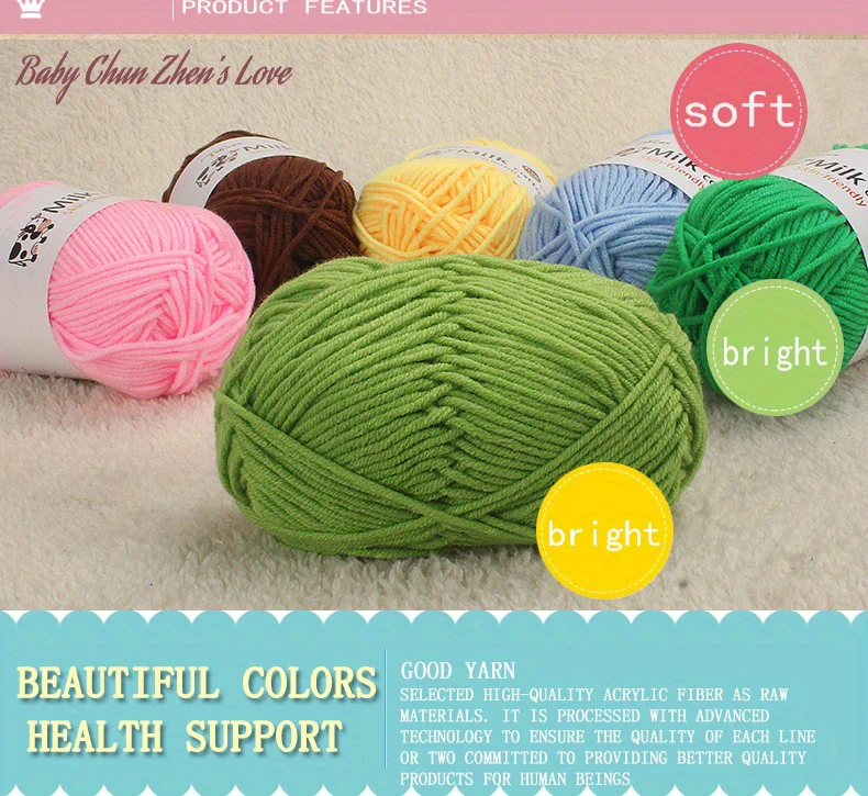 • Acrylic Blended Yarn :Crafted from 100% acrylic, this yarn offers a soft and warm touch, perfect for baby sweaters and doll clothing.
