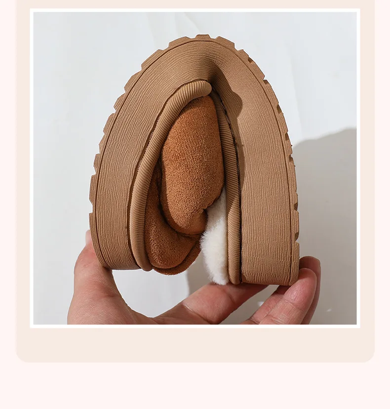 Gacimy Warm Fur Plush Slippers For Women Fashion Fur Collar Indoor Suede Platform Slides Comfort Fuzzy Fluffy House Cotton Shoes