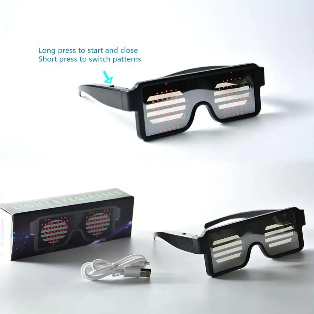 USB Charging LED Lighting Eyeglasses 4 Colors 10 Patterns Luminous Glasses for Halloween Bar KTV