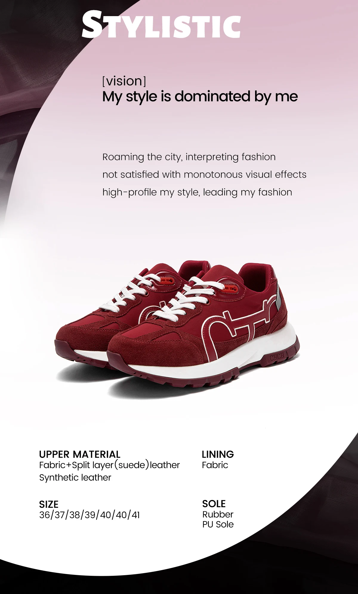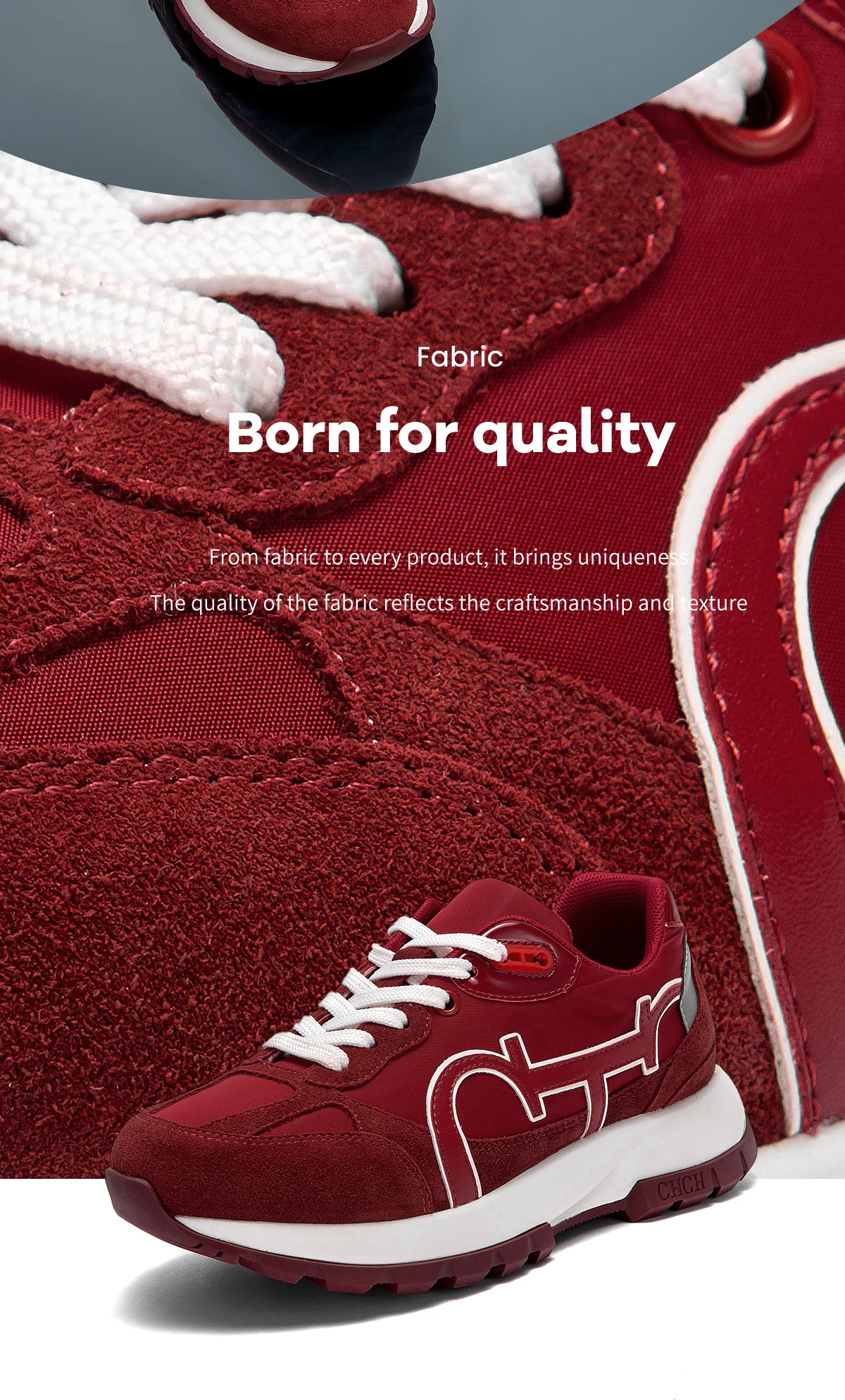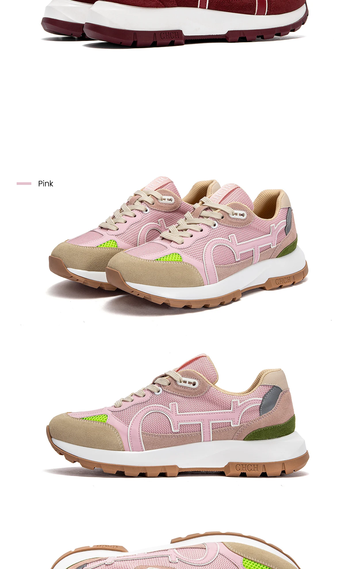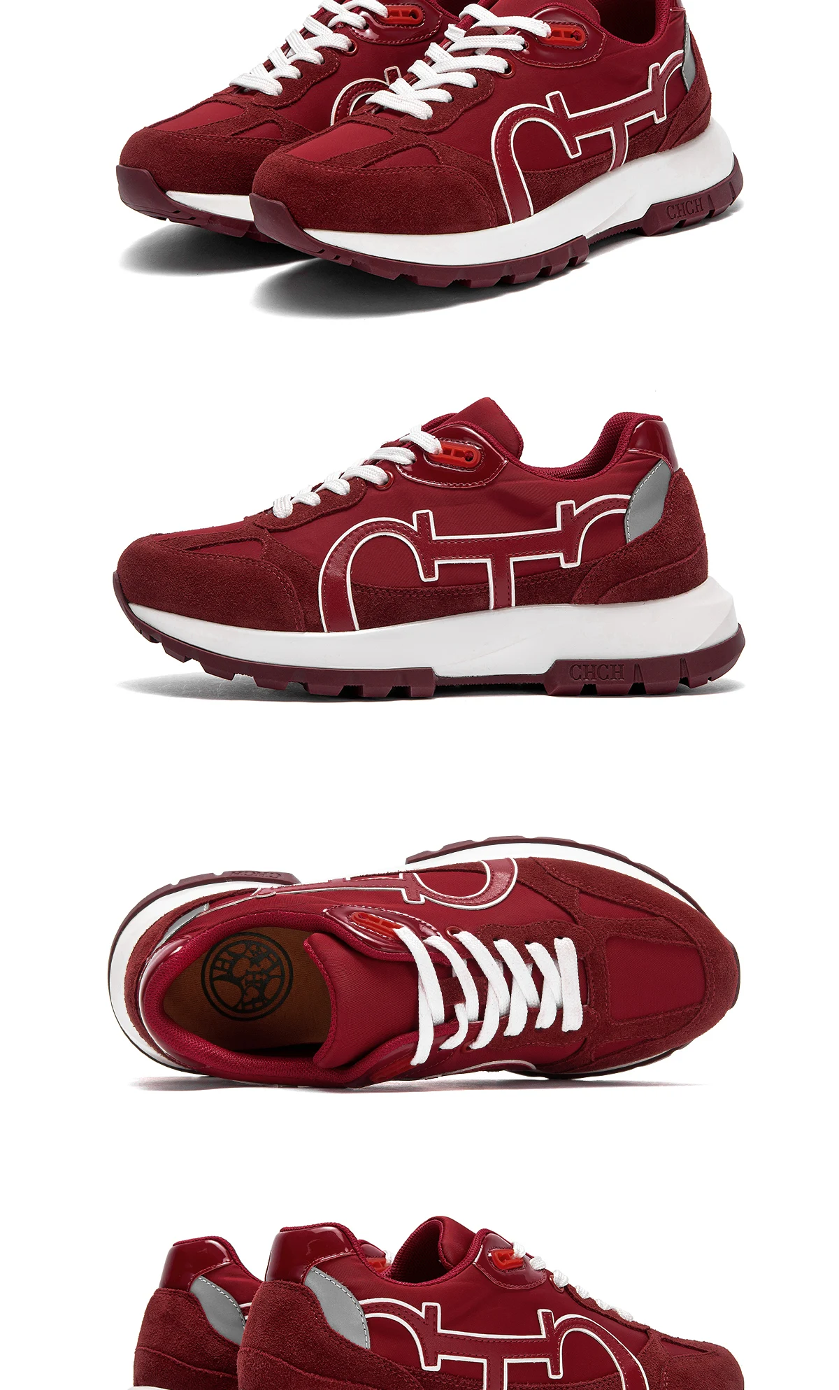 CHCH Women's Casual Shoes 2024 New Wine Red Retro Cow Leather Splicing Design Walking Shoes Skeleton Correction