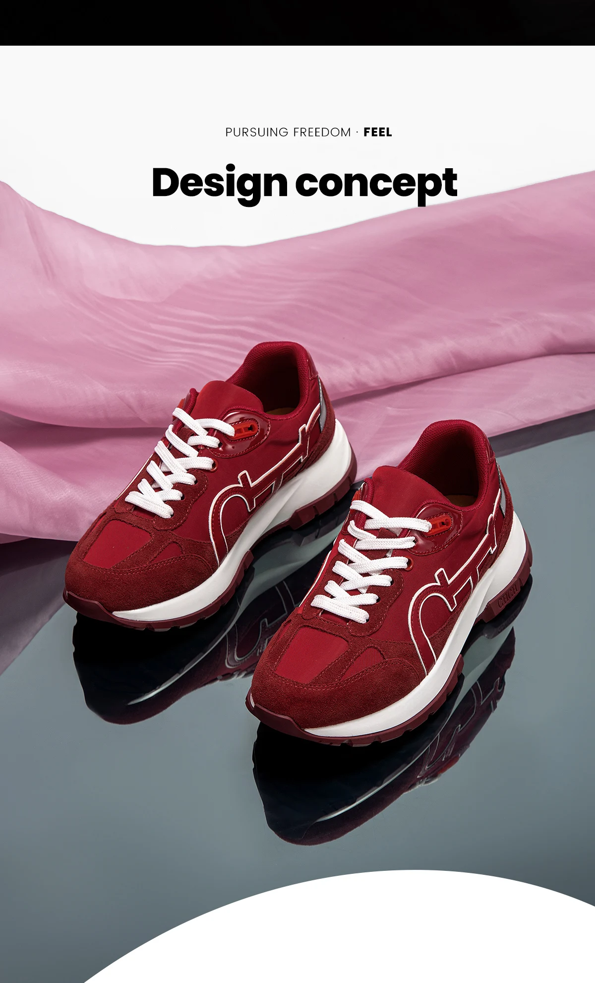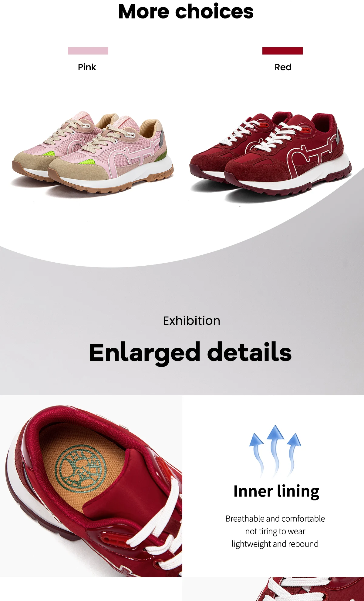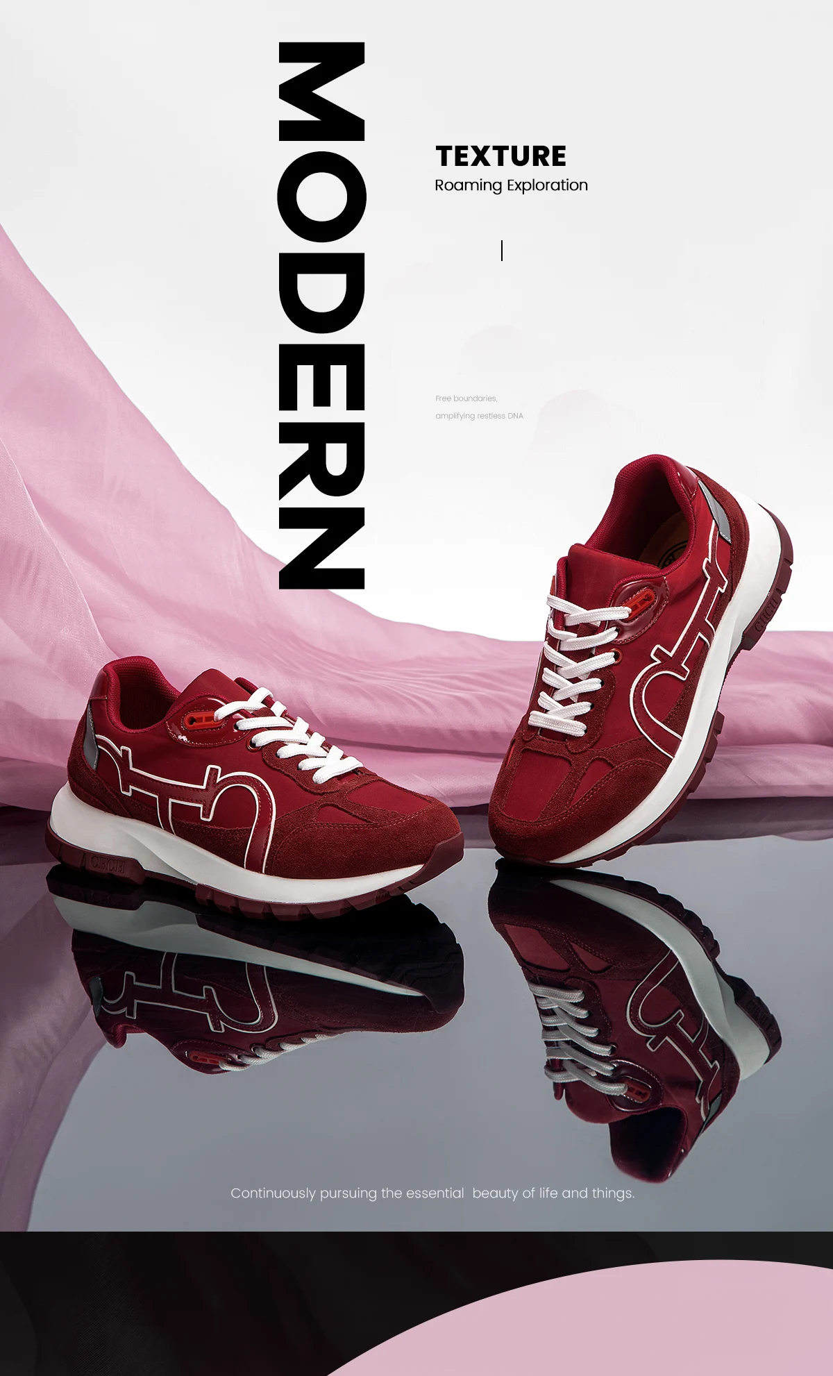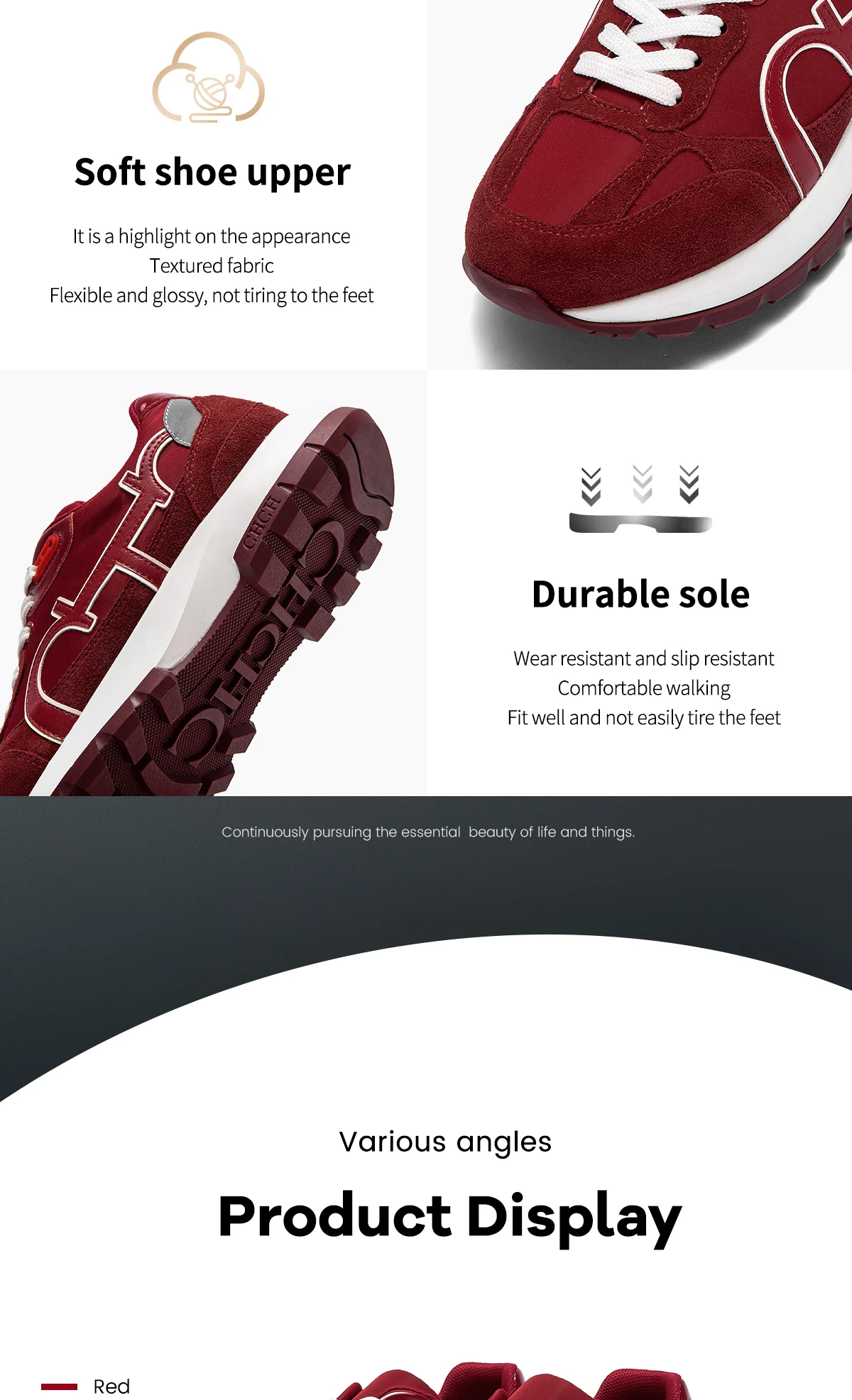 CHCH Women's Casual Shoes 2024 New Wine Red Retro Cow Leather Splicing Design Walking Shoes Skeleton Correction