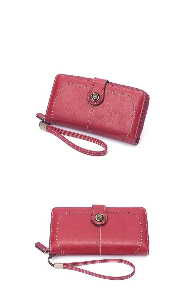 • Retro Oil Wax Hollowed Out Design :The unique retro oil wax hollowed out design gives this wallet a vintage look that's sure to turn heads.