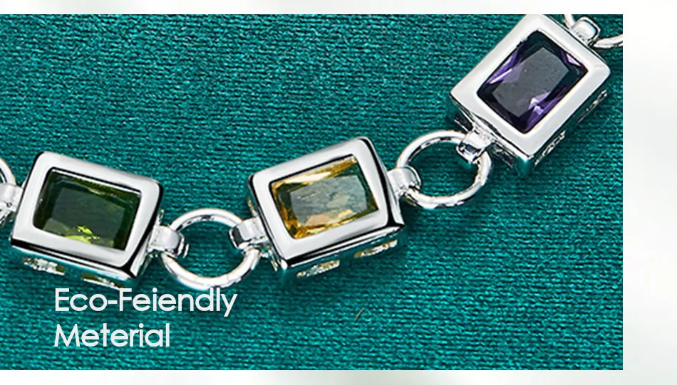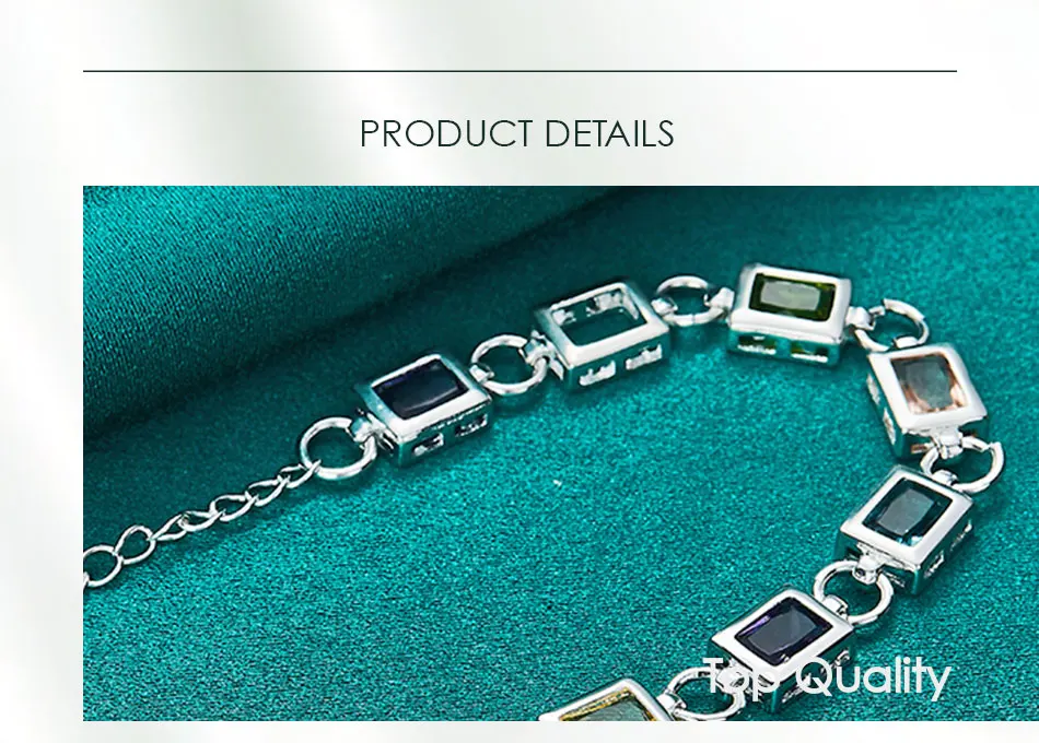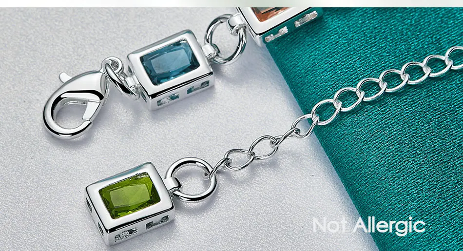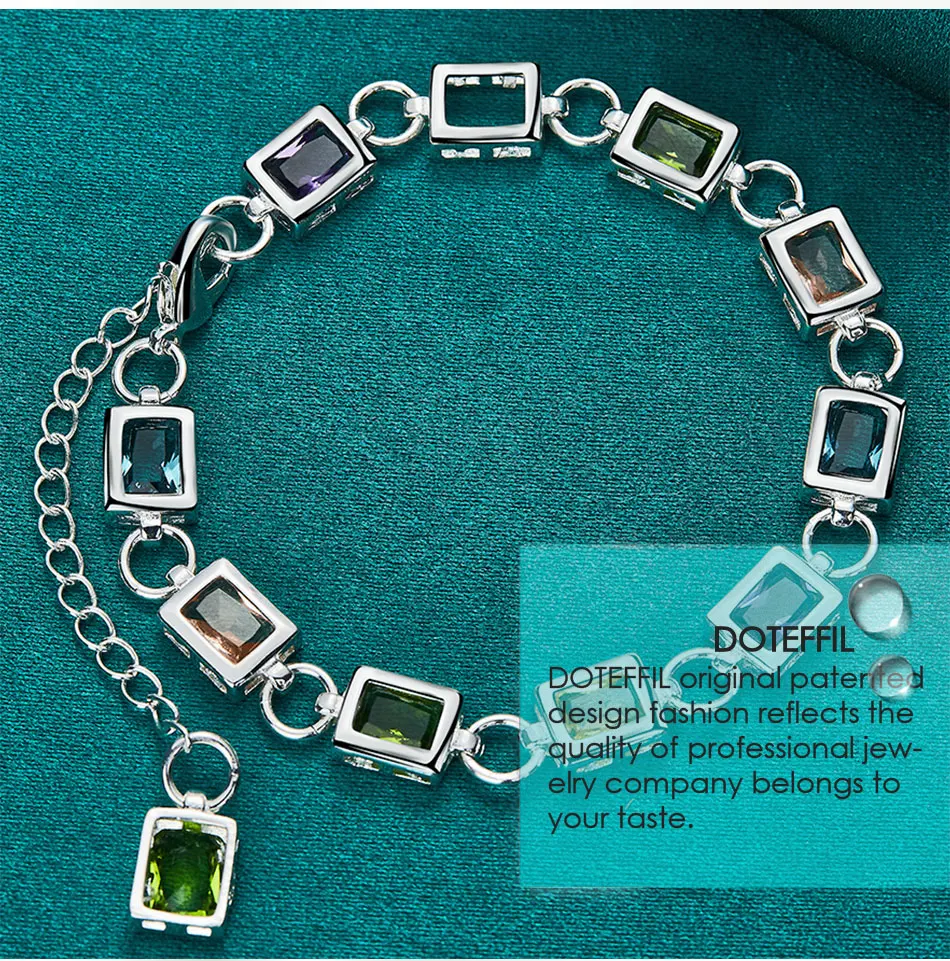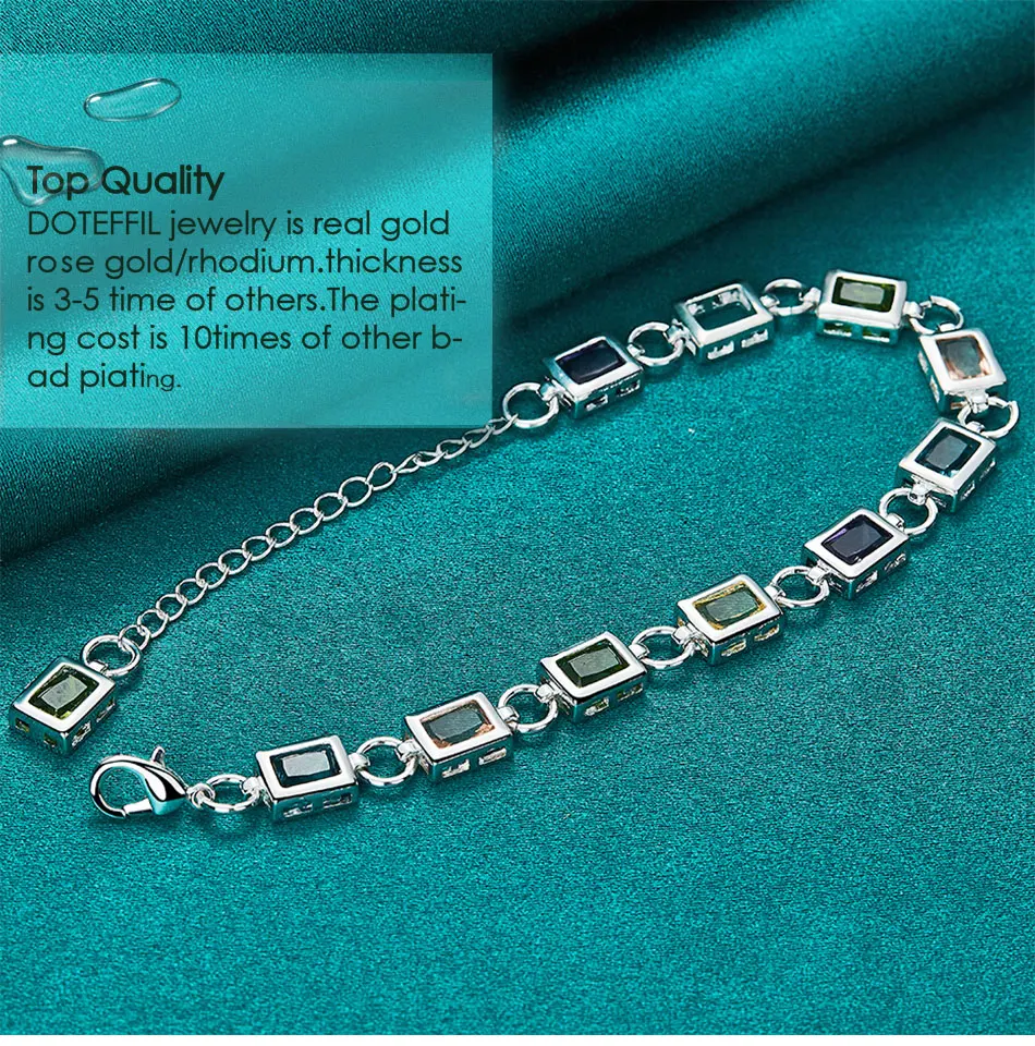 DOTEFFIL 925 Sterling Silver Square inlaid With Multi-color AAA Zircon Bracelet Chain For Woman Engagement Party Wedding Jewelry