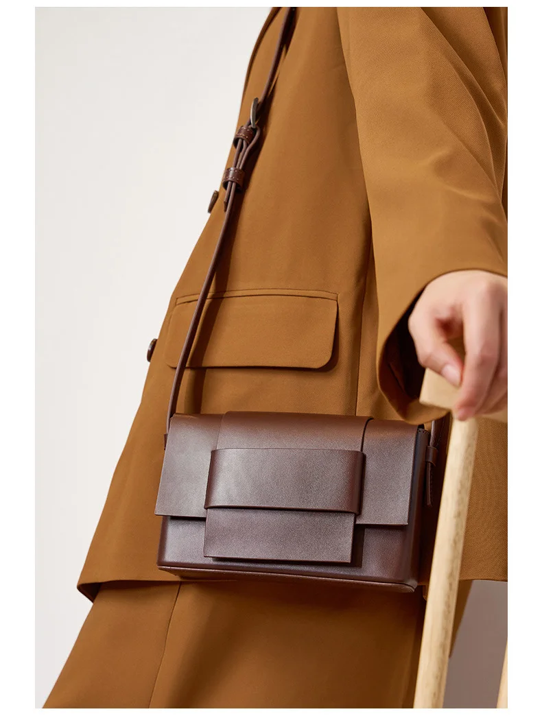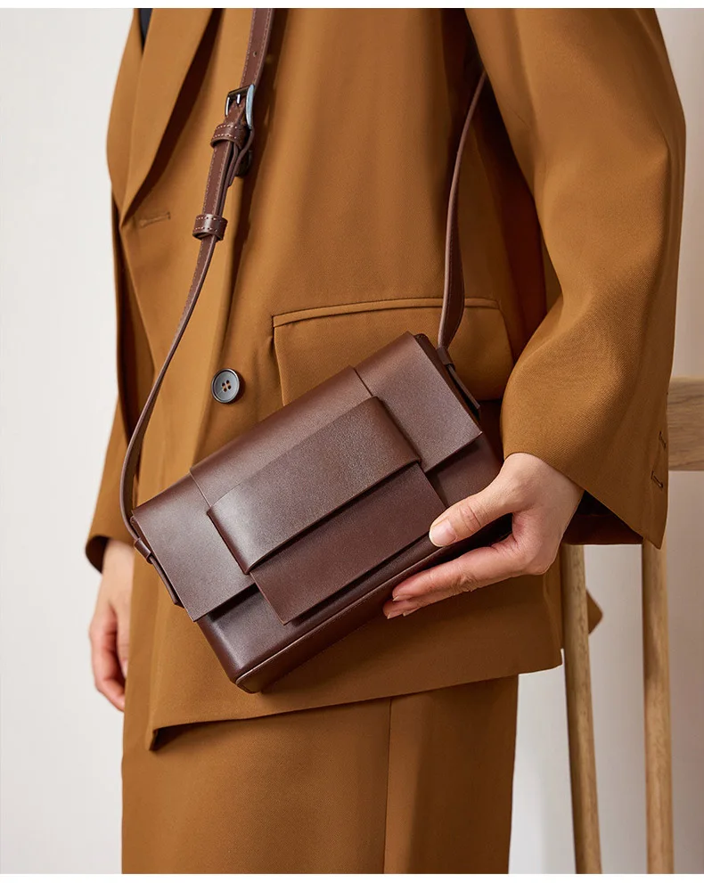 Fashion Neutral Split Leather Messenger Bags Solid Color Lady Casual Shoulder Bags Women Knitting Square Cross-body Bag New 2023