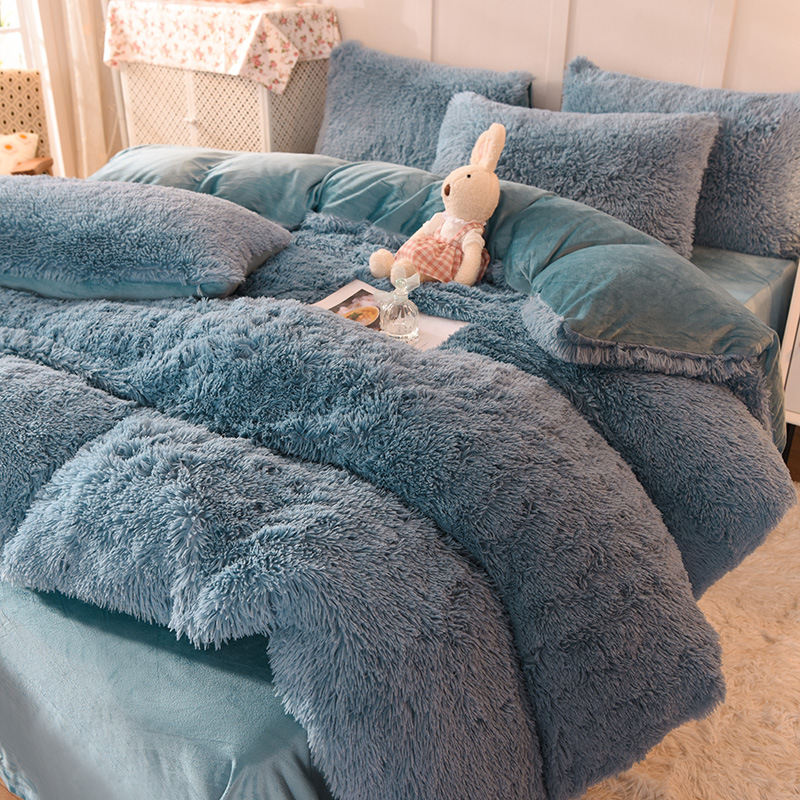 Pattern: Sapphire Blue, Size Specification: 1.8M Fitted Sheet - Mink Fur Fabric Long Wool Thickened Q119-CJCS253803208HS