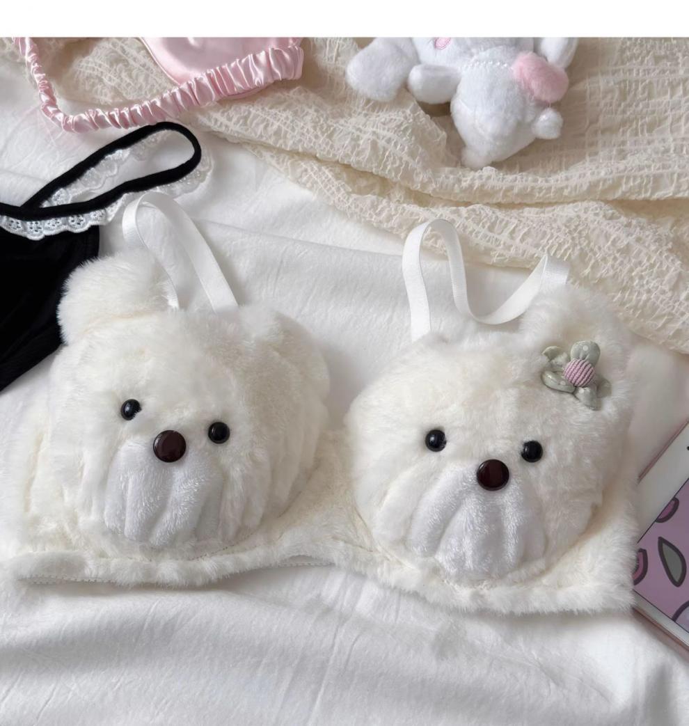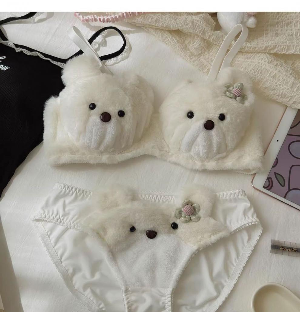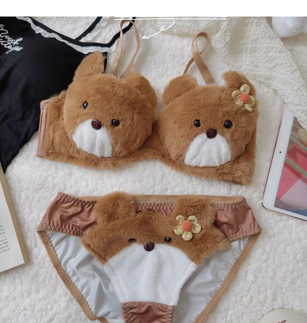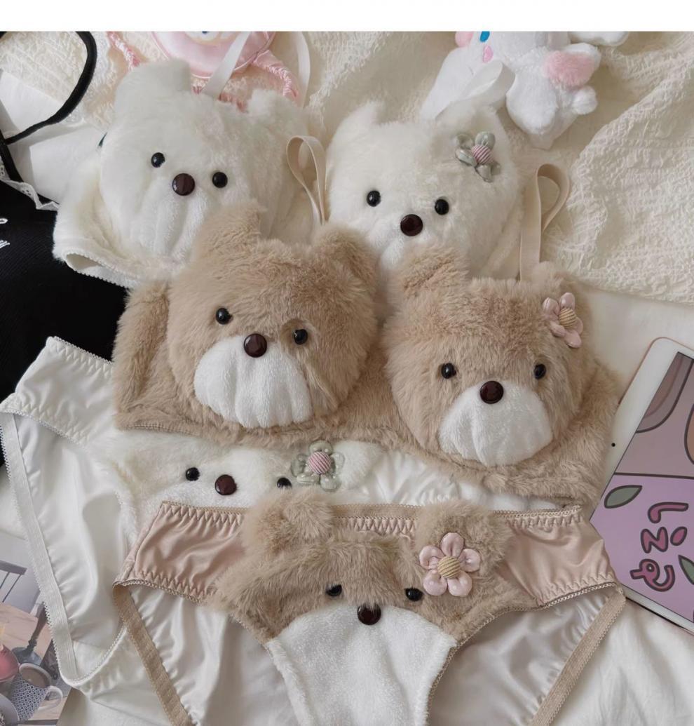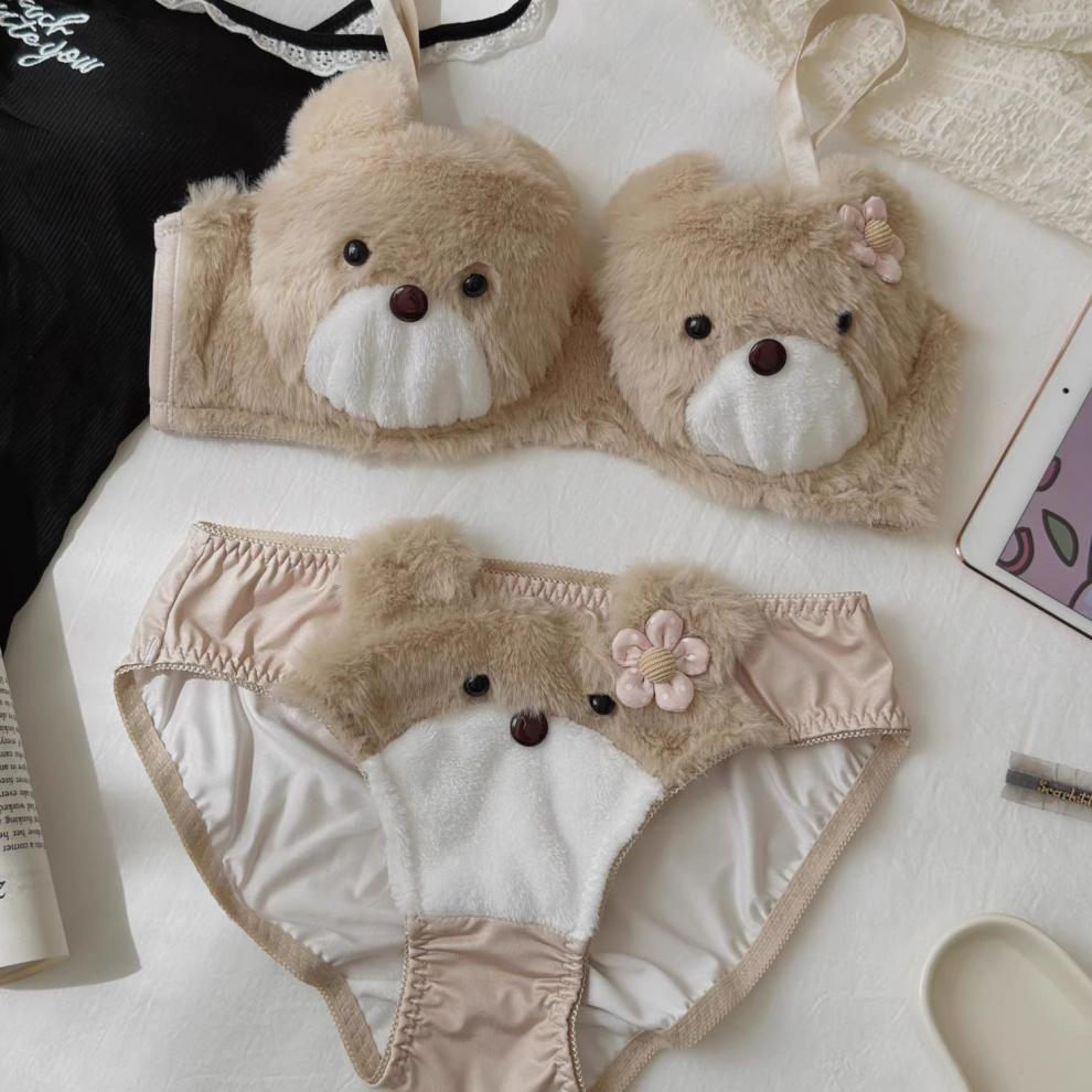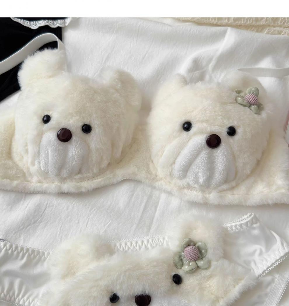 Color: Bear plush bra set light brown, Bear plush bra set White, Bear plush bra set coffee color, Bear plush underwear 3 pairs/pack
