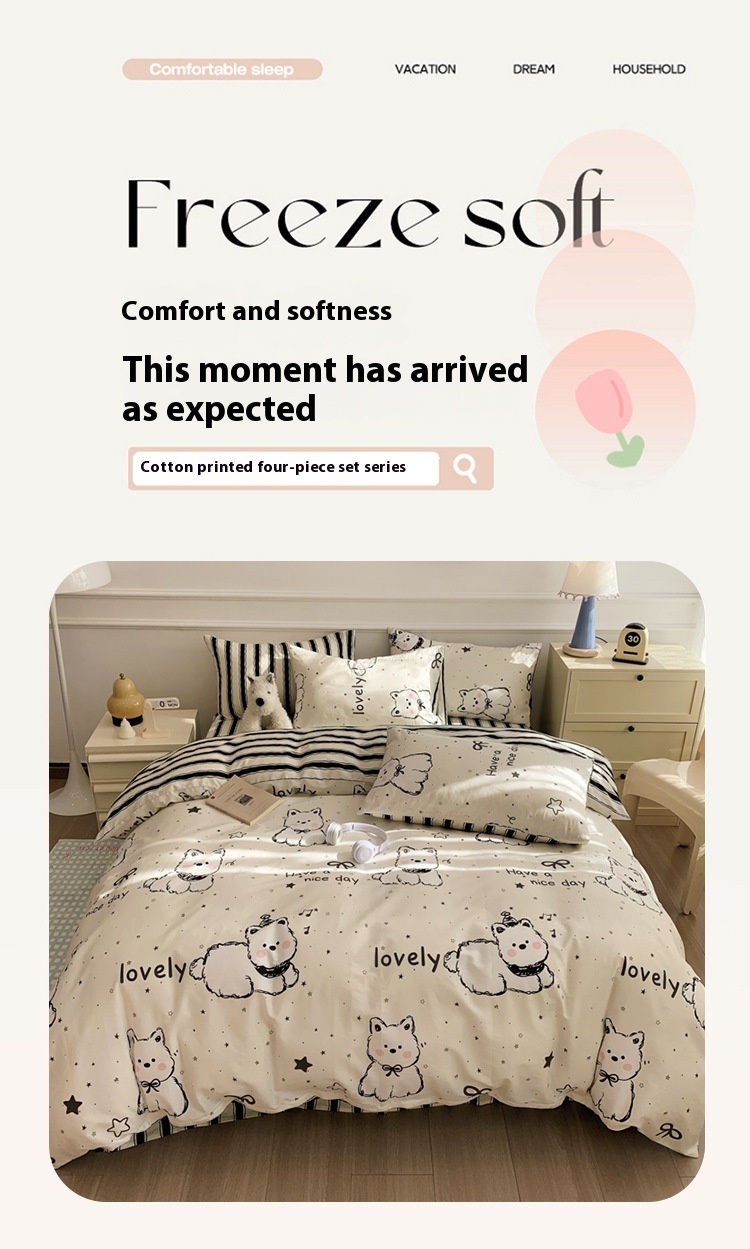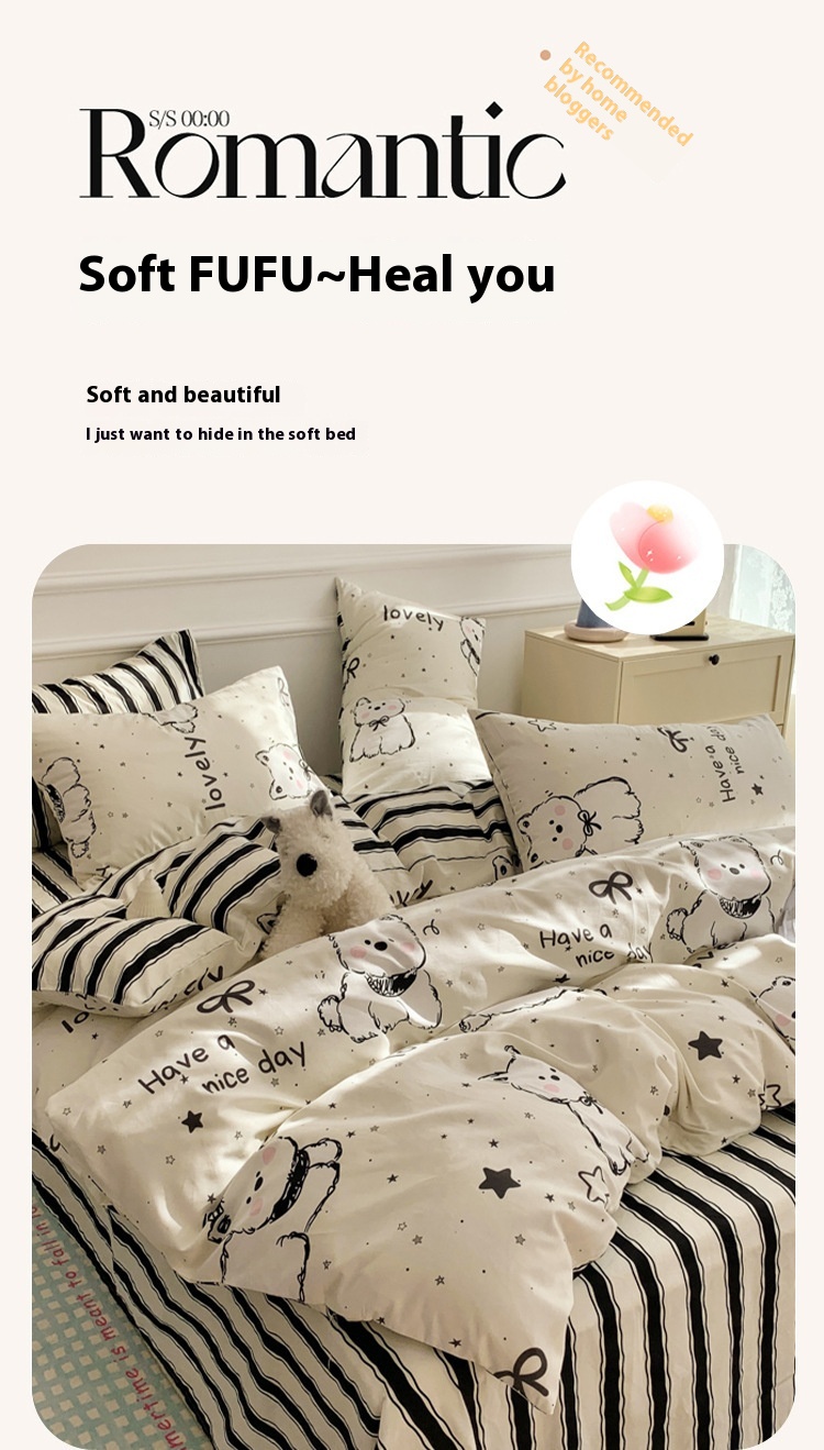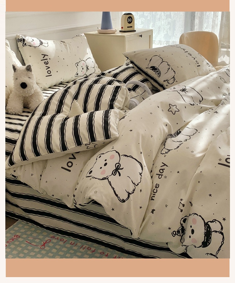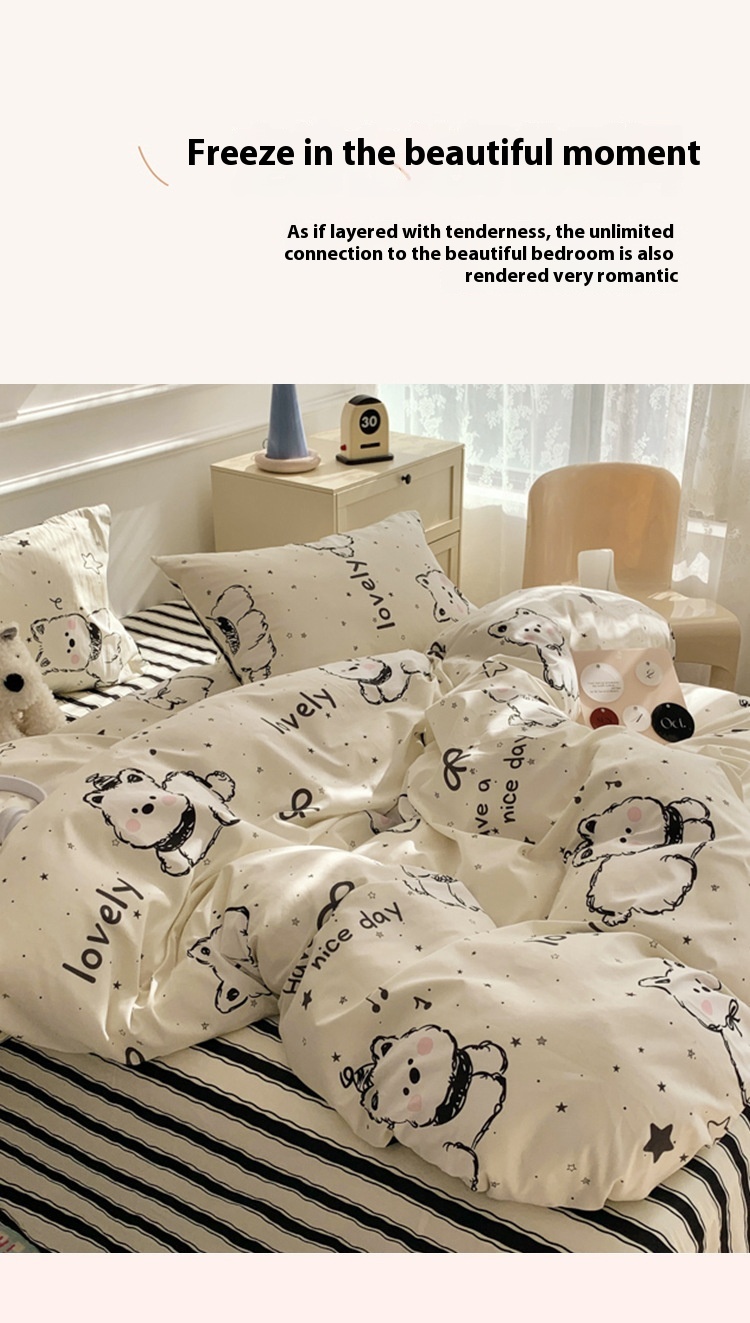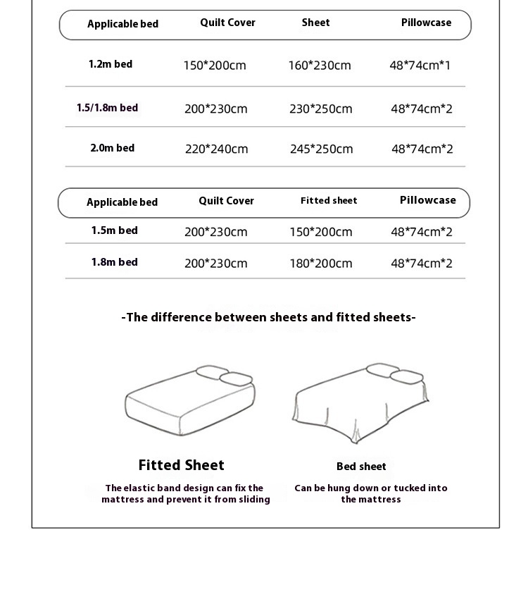 Size: 0.9m dormitory bed [three-piece bed sheet]-suitable for 150 * 200cm duvet insert, 1.2m bed [three-piece bed sheet]-suitable for 150 x200cm duvet insert, 1.5m bed [four-piece set bed sheet]-suitable for 200 x230cm duvet insert, 1.8m bed [four-piece set bed sheet]-suitable for 200 x230cm duvet insert, 2.0m bed [four-piece set bed sheet]-suitable for 220 x240cm duvet insert