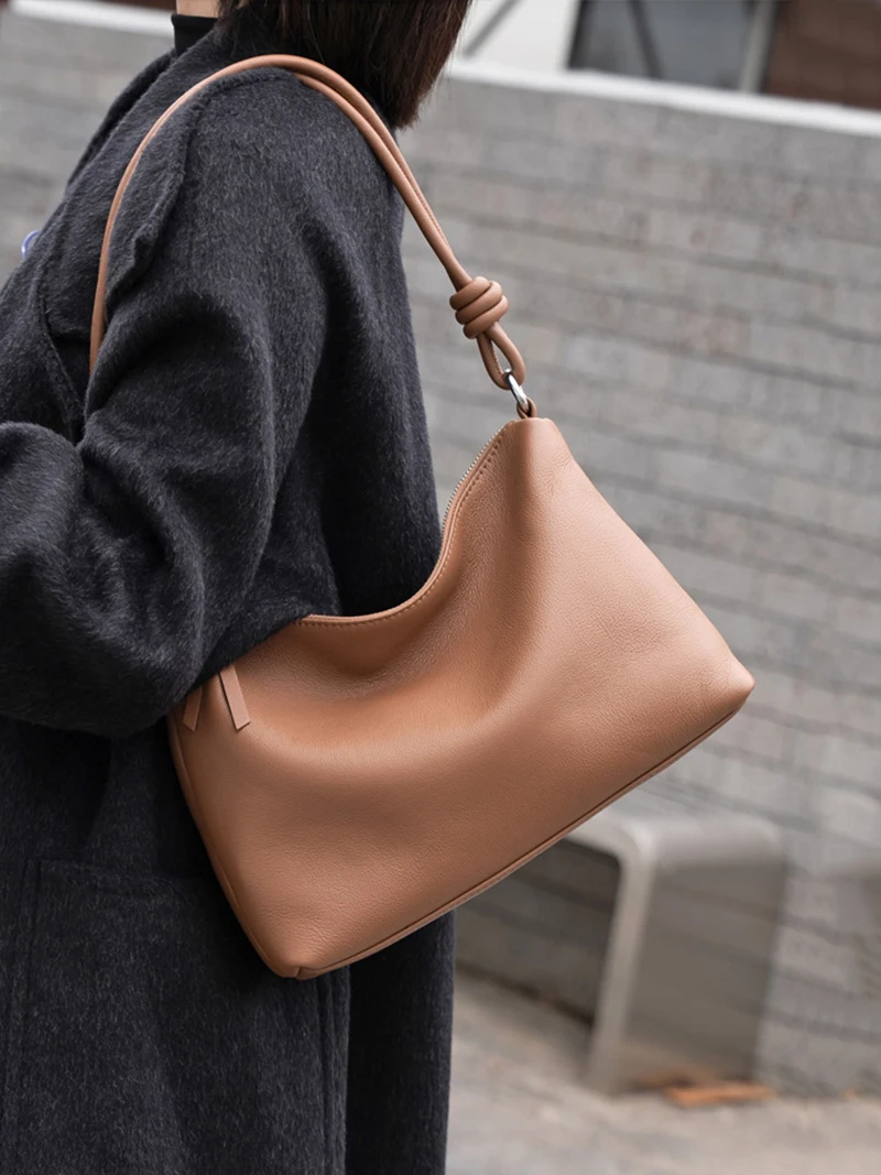 Summer New Women's Solid Color Armpit Tote Handbag Lady Simple Commuting Large Capacity Single Shoulder Crossbody Dumpling Bag