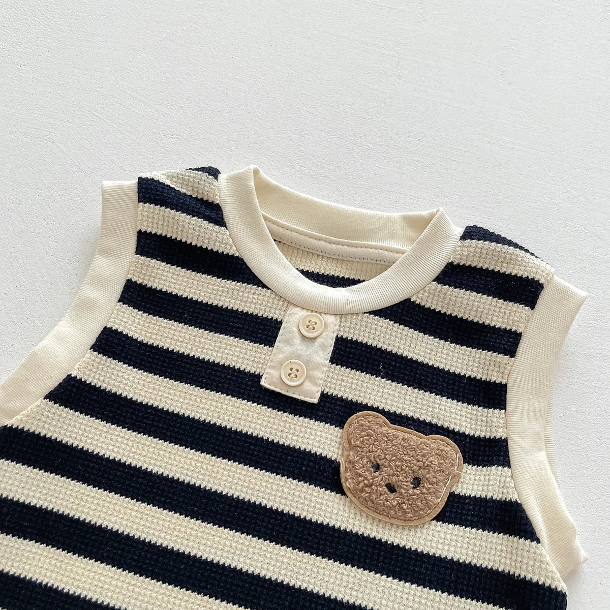 -The sleeveless design facilitates infant mobility and allows the baby's arms to freely explore the surrounding environment.