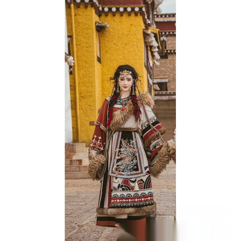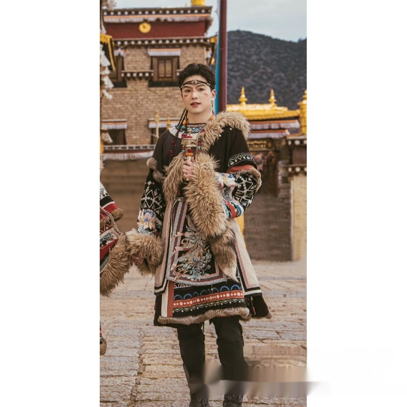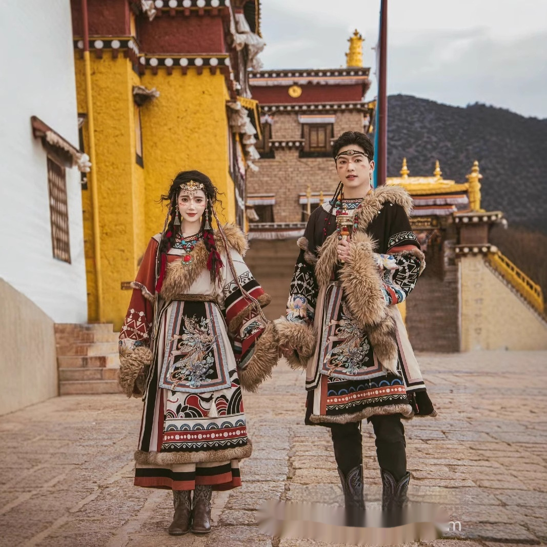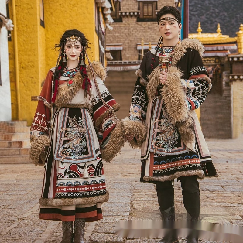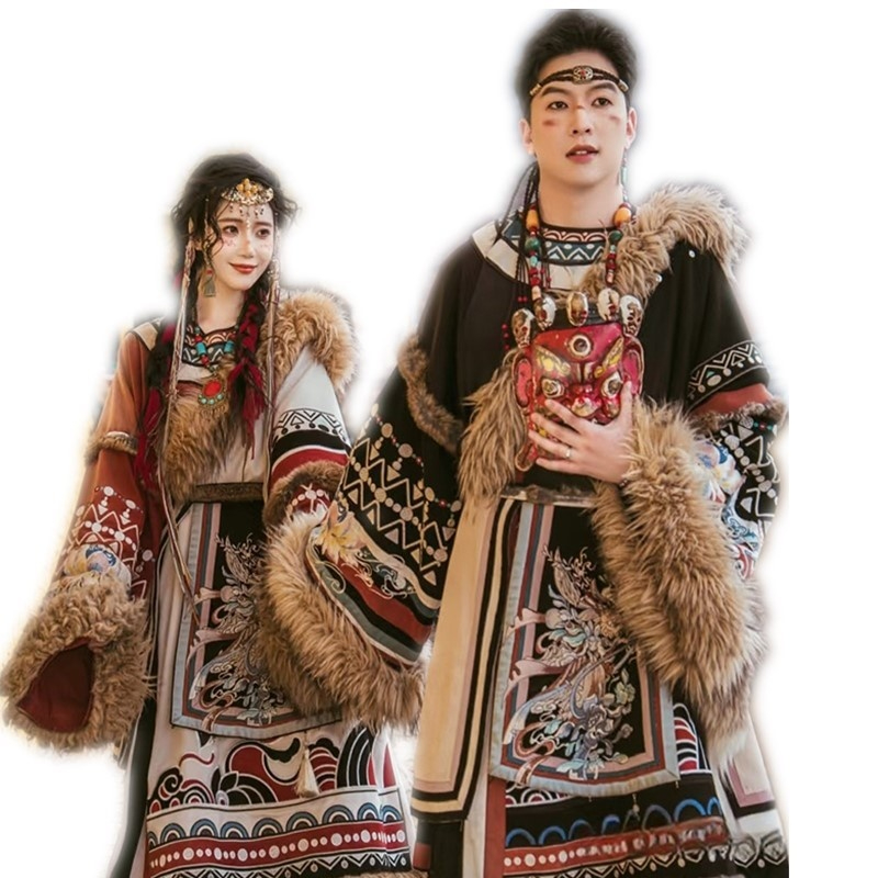 Color: Women's Tibetan robe shirt shawl belt, men's Tibetan robe shirt shawl belt