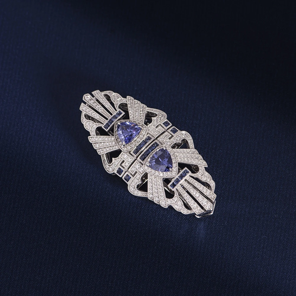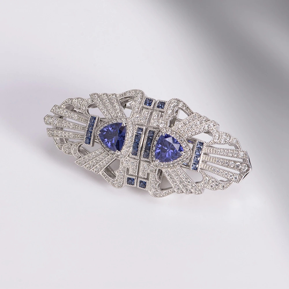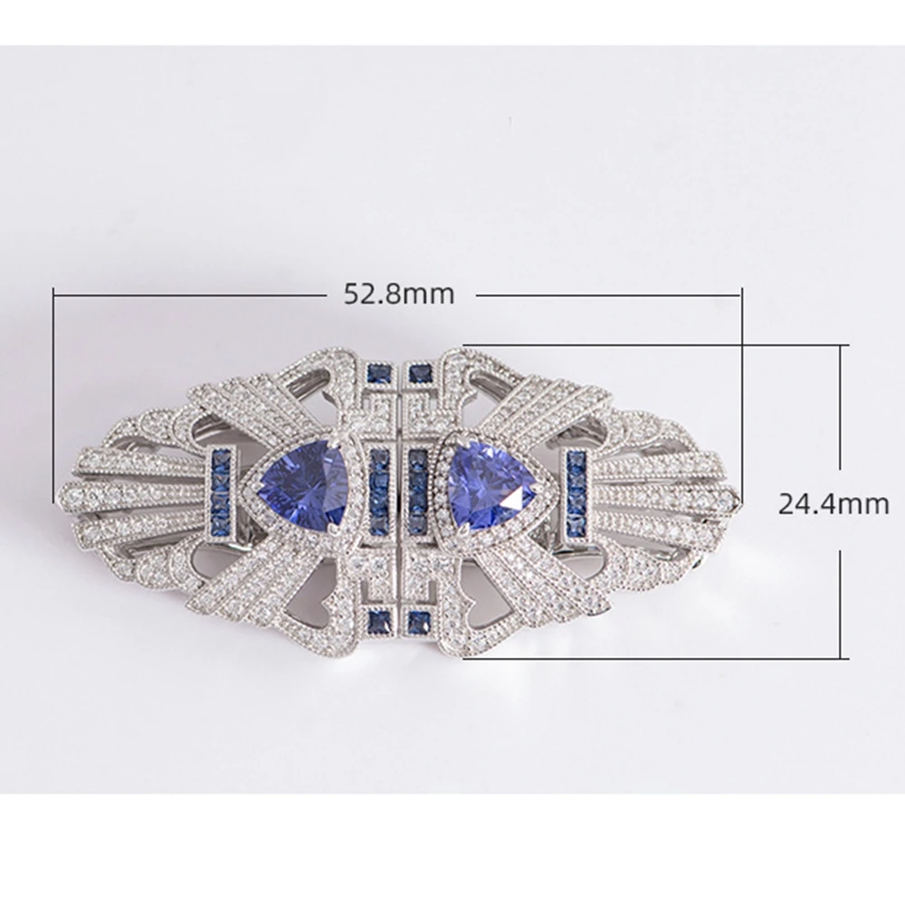 Wong Rain Luxury 100% 925 Sterling Sliver Sapphire High Carbon Diamond Gemstone Women Brooch Brooches Fine Jewelry Anniversary Gifts