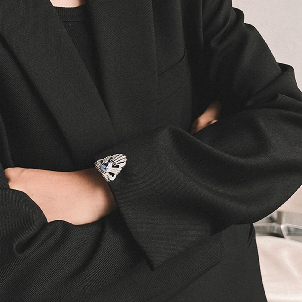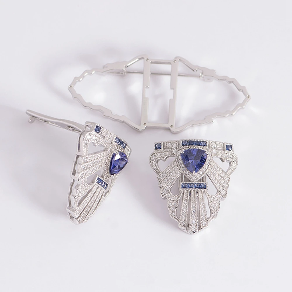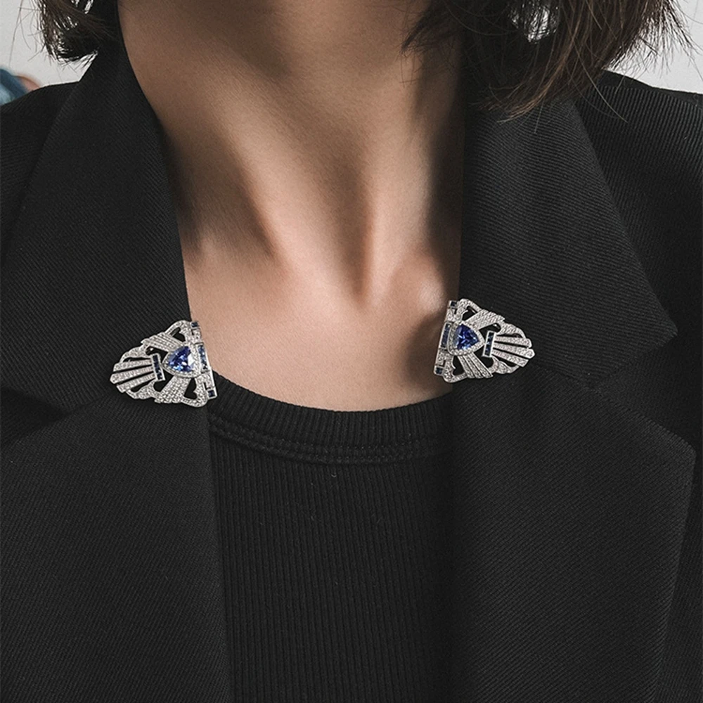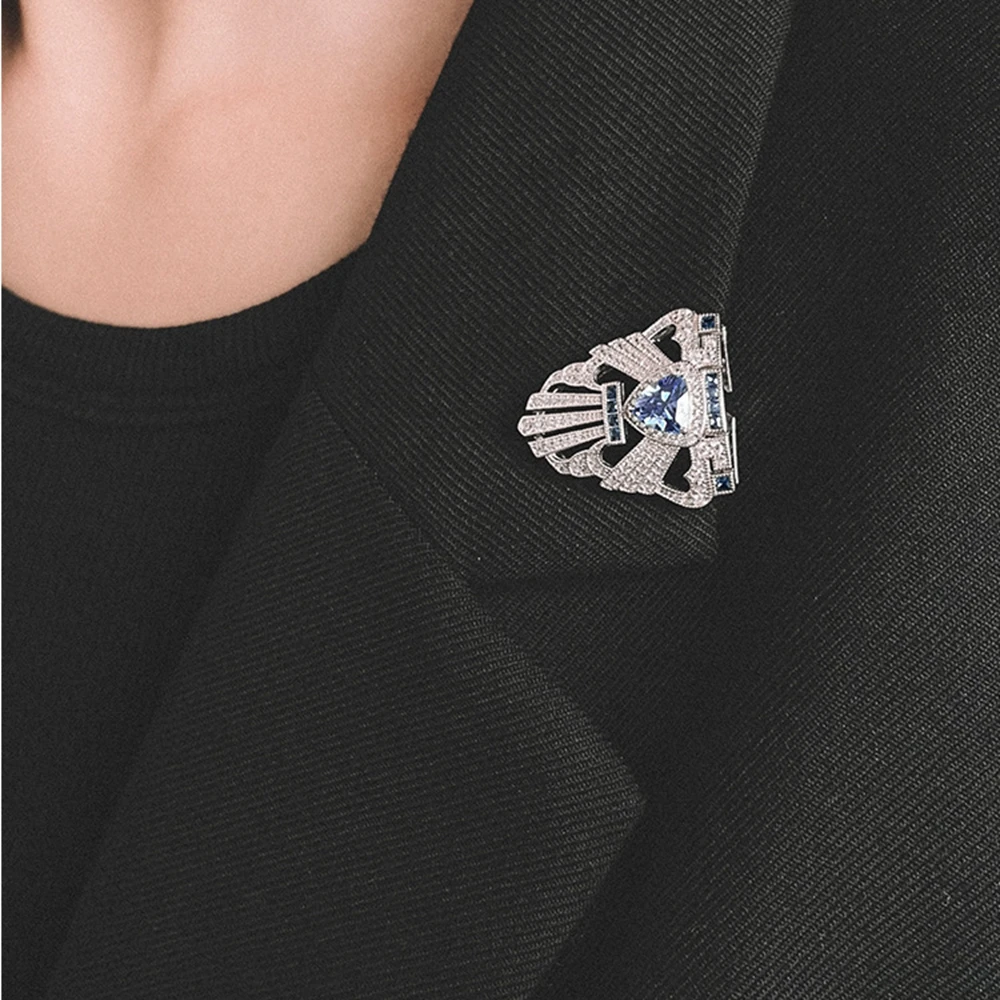 Wong Rain Luxury 100% 925 Sterling Sliver Sapphire High Carbon Diamond Gemstone Women Brooch Brooches Fine Jewelry Anniversary Gifts